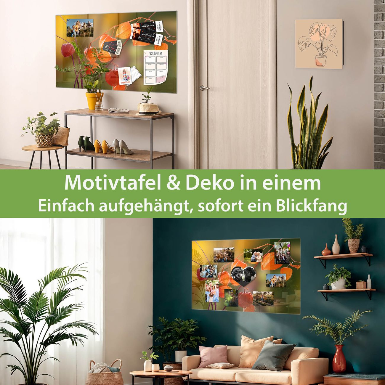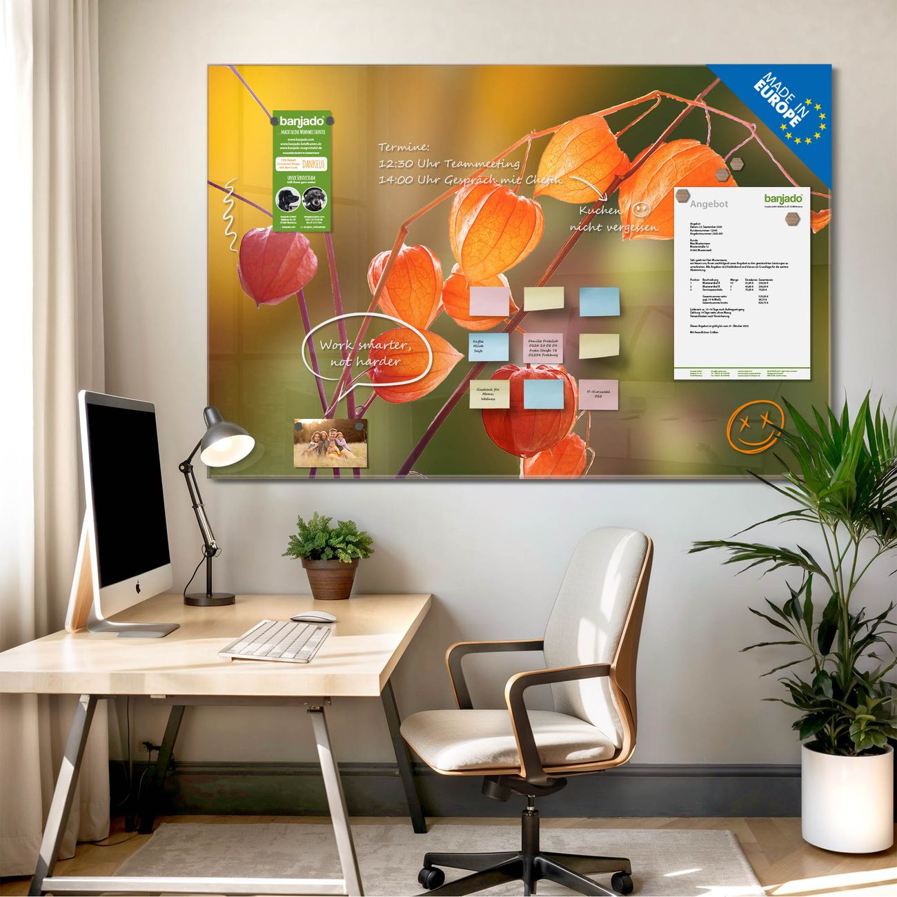 Die banjado Glas Magnettafel mit dem Motiv Motiv Lampionblume verbindet Funktionalität mit Stil. Sie ersetzt das Zettelchaos durch klare Strukturen und bringt dabei eine warme, natürliche Atmosphäre in Ihr Zuhause. Ob im Büro, in der Küche oder im Eingangsbereich - dieses Design-Board zieht Blicke an und sorgt für Ordnung mit Charakter.