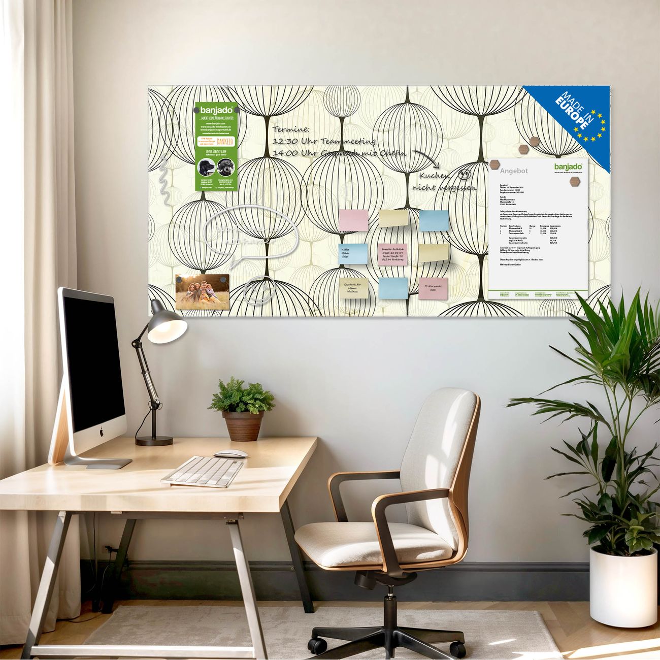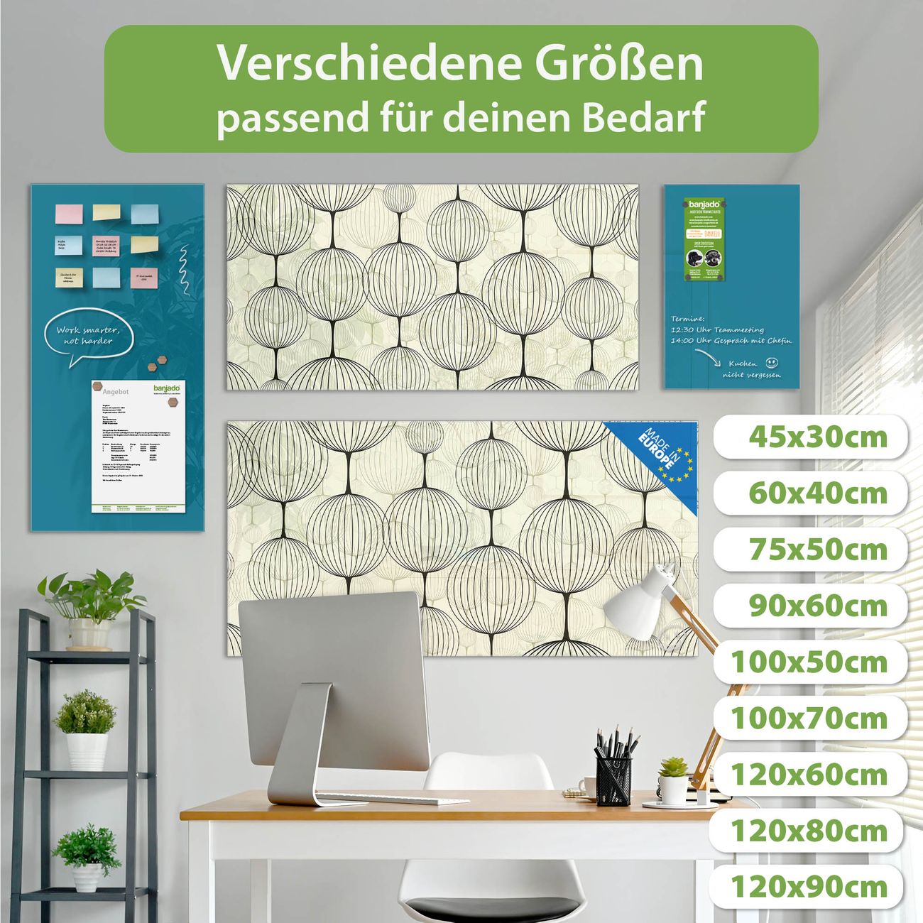 Jede Glas Magnettafel wird in unserer Werkstatt von Hand gefertigt und sorgfältig geprüft. So erhalten Sie ein echtes Qualitätsprodukt, das Funktion und Ästhetik perfekt vereint.?? Warum banjado?
