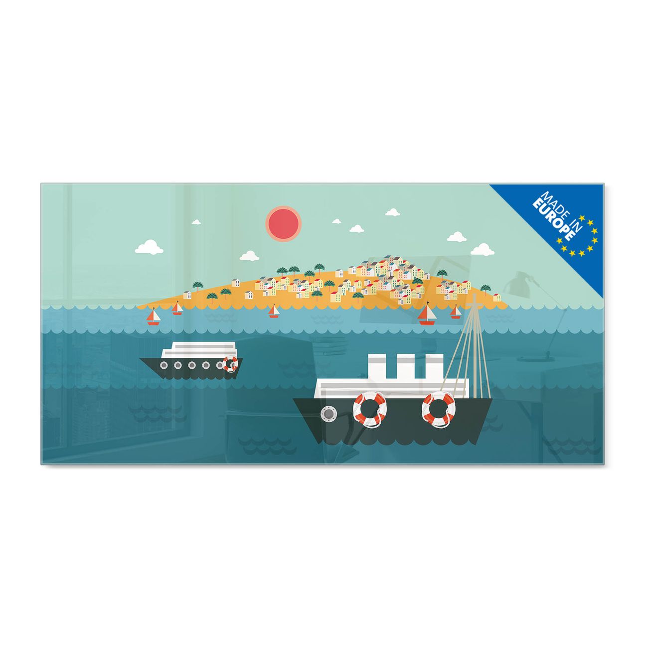 Glas Magnettafel im Querformat Motiv Land in Sicht