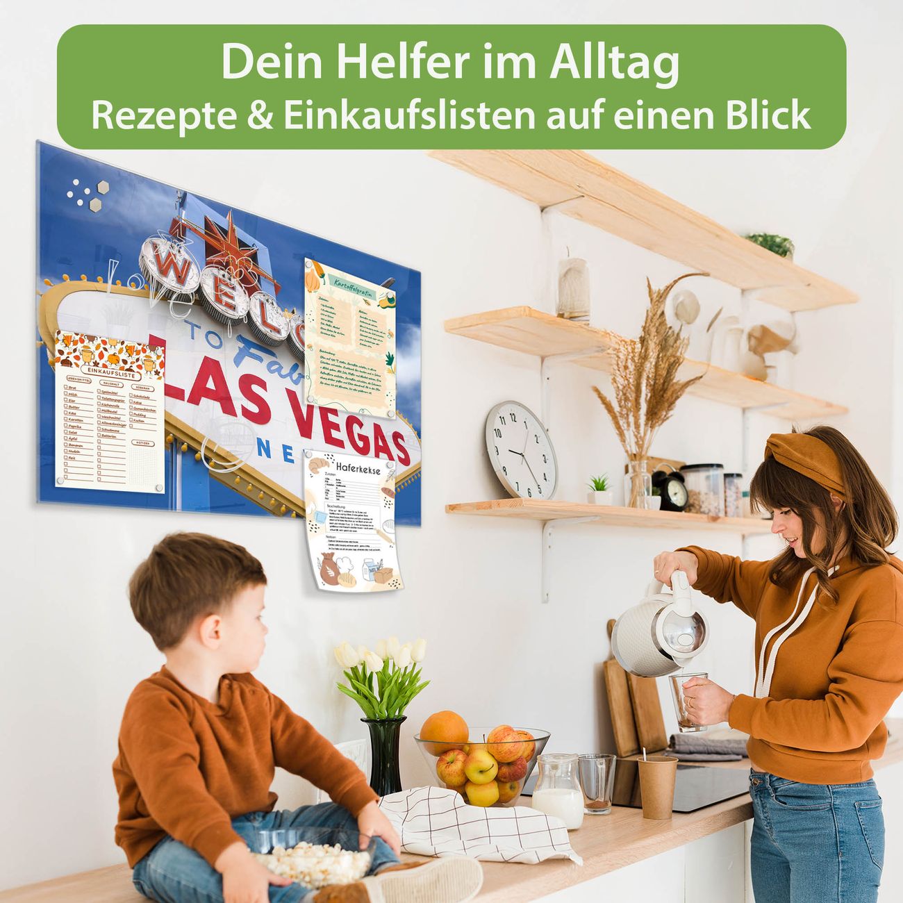 Die banjado Glas Magnettafel mit dem Motiv Motiv Las Vegas verbindet Funktionalität mit Stil. Sie ersetzt das Zettelchaos durch klare Strukturen und bringt dabei eine warme, natürliche Atmosphäre in Ihr Zuhause. Ob im Büro, in der Küche oder im Eingangsbereich - dieses Design-Board zieht Blicke an und sorgt für Ordnung mit Charakter.