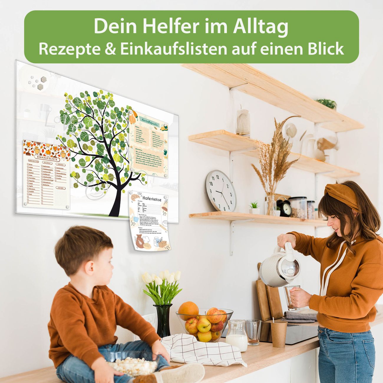 Ein Stück Design, das Ihren Alltag organisiert. Schreiben, heften, inspirieren - alles an einem Ort. Qualität, die man spürt. Montage leicht gemacht. Handwerk mit Herz - veredelt in Sachsen. Einzigartiges Design mit Motiv Motiv Laubzauberbaum Beschreibbare Glasoberfläche, leicht zu reinigen Starke Magnetkraft durch Stahlrückwand Inklusive 4 Neodym-Magneten Flexible Montageoptionen Handveredelt in Sachsen - Qualität, die bleibt