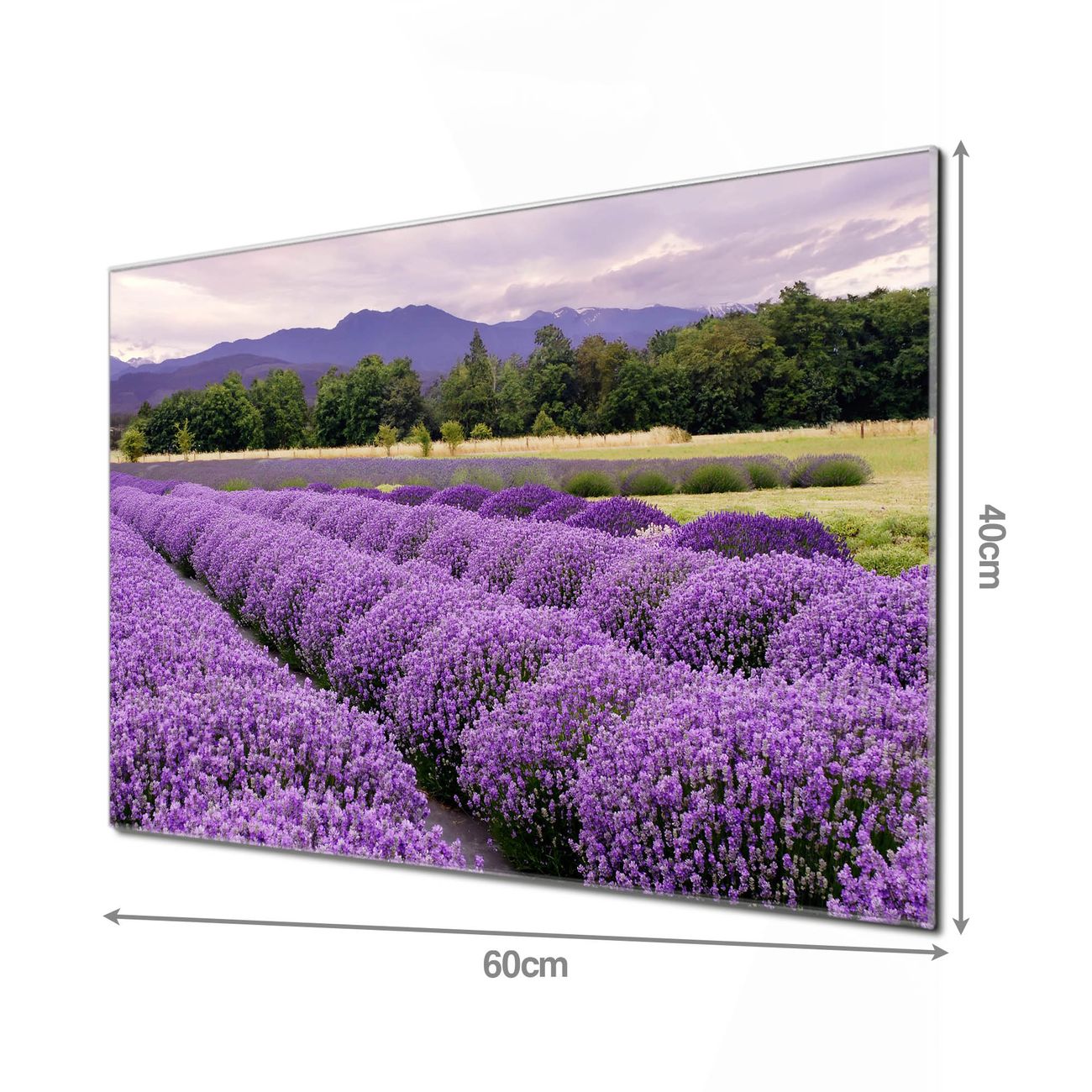 Material: 4mm Sicherheitsglas mit Metallrückwand Eigenschaften: beschreibbar, magnetisch, kratzfest Maße: 60x40x0,6cm, 3,6kg schwer Motiv Nummer 10429 Lavendel 1 Zubehör: inklusive 4 Neodym-Magnete