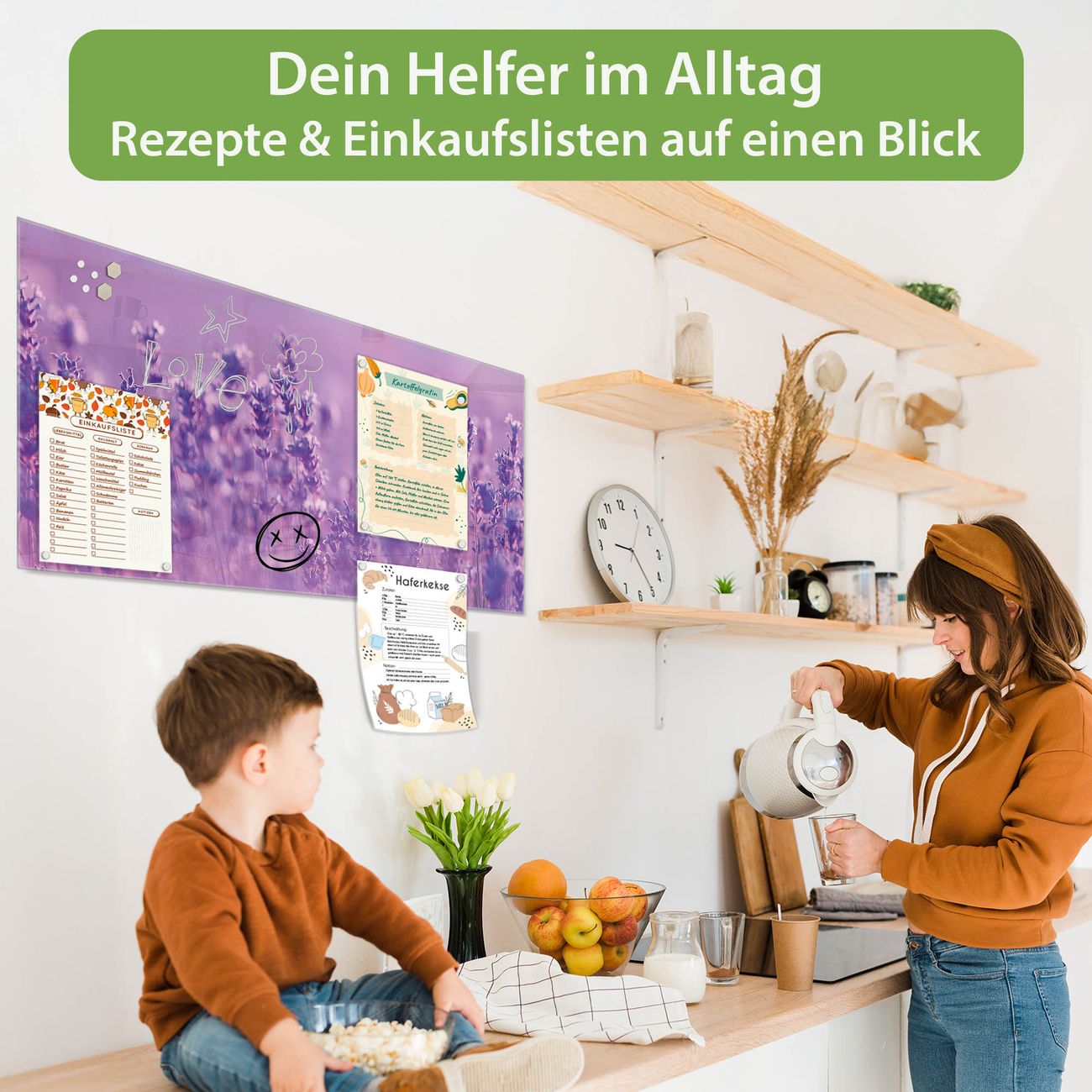 Ein Stück Design, das Ihren Alltag organisiert. Schreiben, heften, inspirieren - alles an einem Ort. Qualität, die man spürt. Montage leicht gemacht. Handwerk mit Herz - veredelt in Sachsen. Einzigartiges Design mit Motiv Motiv Lavendelmeer Beschreibbare Glasoberfläche, leicht zu reinigen Starke Magnetkraft durch Stahlrückwand Inklusive 4 Neodym-Magneten Flexible Montageoptionen Handveredelt in Sachsen - Qualität, die bleibt