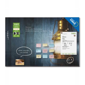 Material: 4mm Sicherheitsglas mit Metallrückwand Eigenschaften: beschreibbar, magnetisch, kratzfest Maße: 120x80x0,6cm, 14,40kg schwer Motiv Nummer 11335 Leuchte Zubehör: inklusive 4 Neodym-Magnete