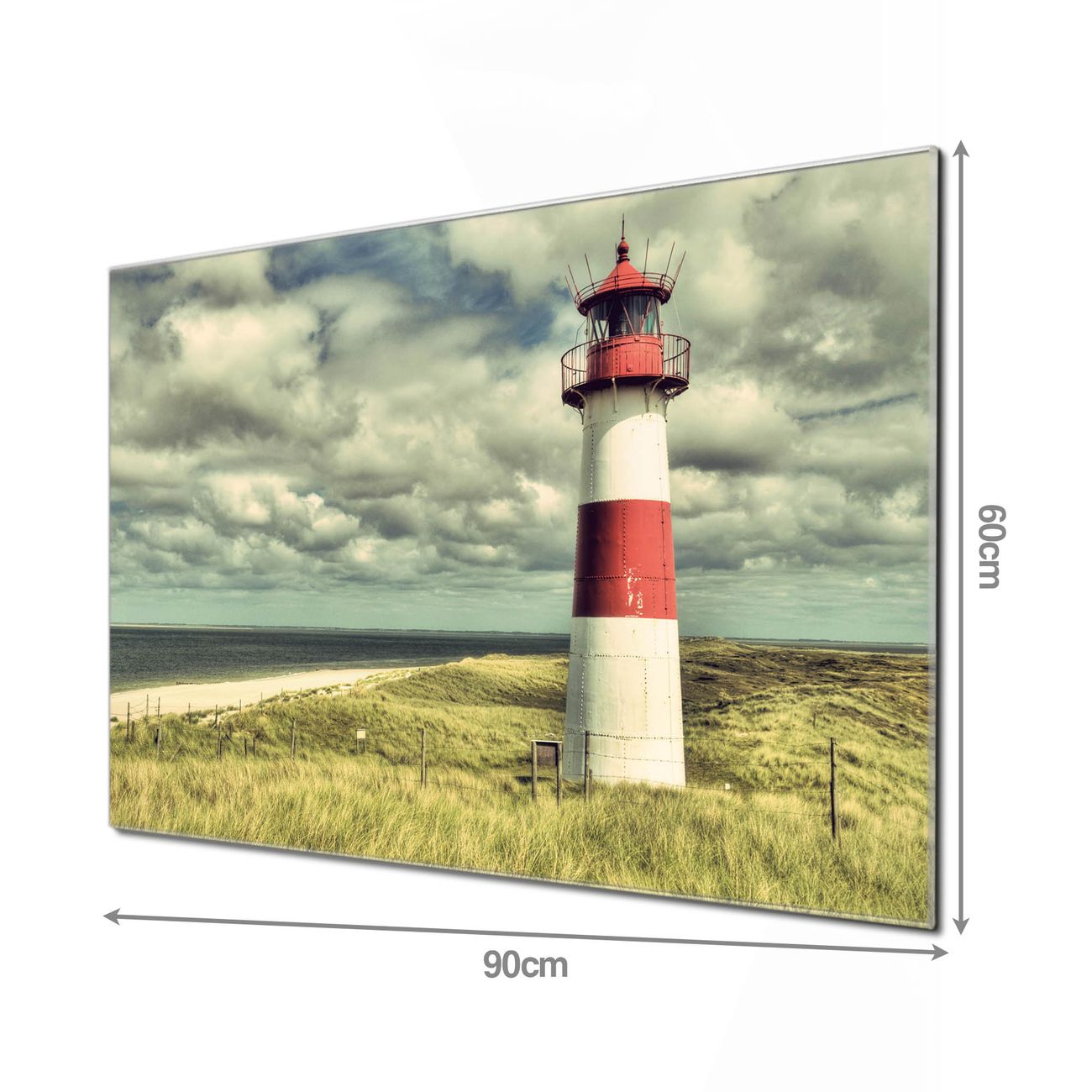 Material  4mm Sicherheitsglas mit Metallrückwand Eigenschaften  beschreibbar, magnetisch, kratzfest Maße  90x60x0,6cm, 8,10kg schwer Motiv  Nummer 12680 Leuchtturm Sylt Zubehör  inklusive 4 Neodym-Magnete