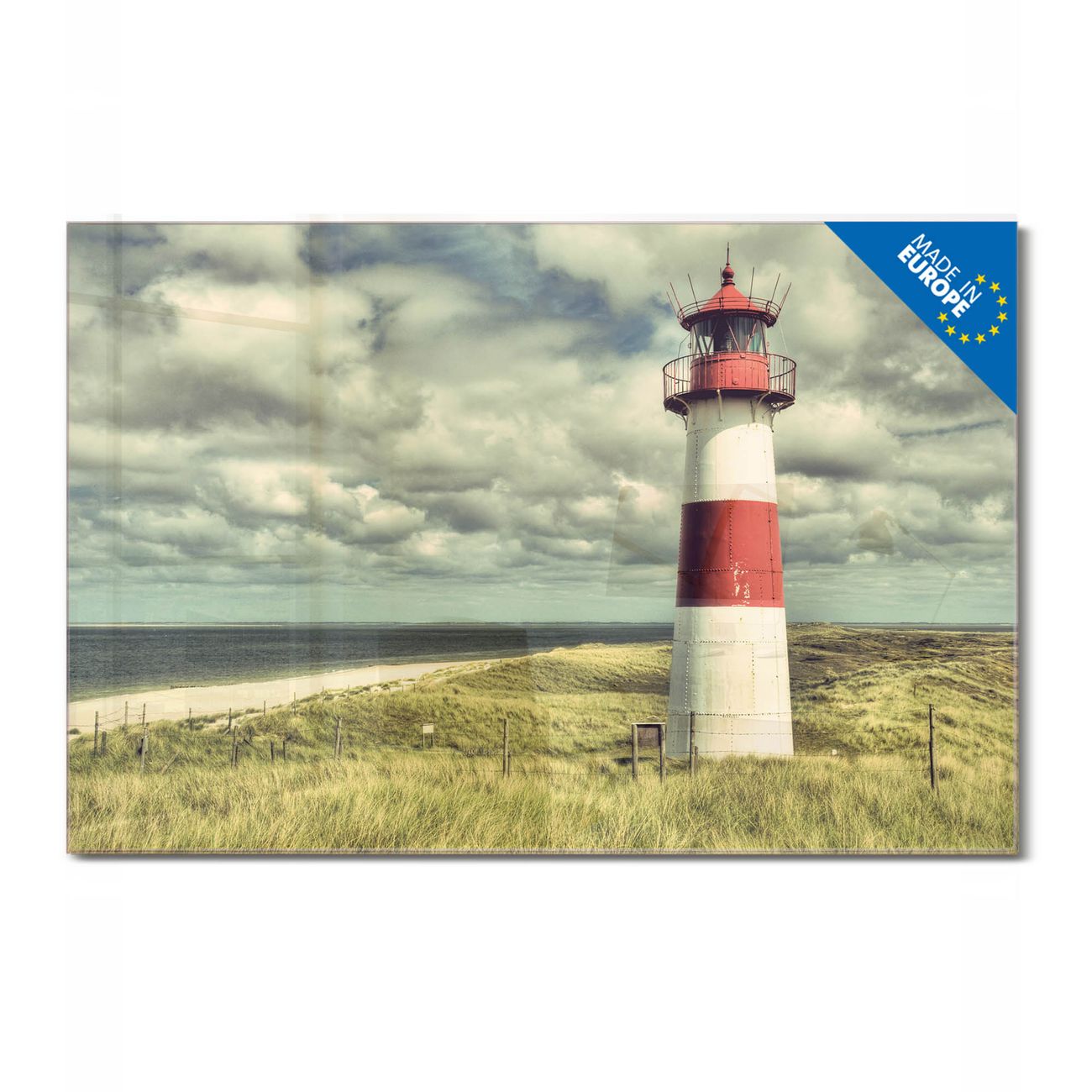 Glas Magnettafel im Querformat Motiv Leuchtturm Sylt