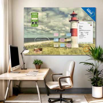 Die banjado Glas Magnettafel mit dem Motiv Motiv Leuchtturm Sylt verbindet Funktionalität mit Stil. Sie ersetzt das Zettelchaos durch klare Strukturen und bringt dabei eine warme, natürliche Atmosphäre in Ihr Zuhause. Ob im Büro, in der Küche oder im Eingangsbereich - dieses Design-Board zieht Blicke an und sorgt für Ordnung mit Charakter.