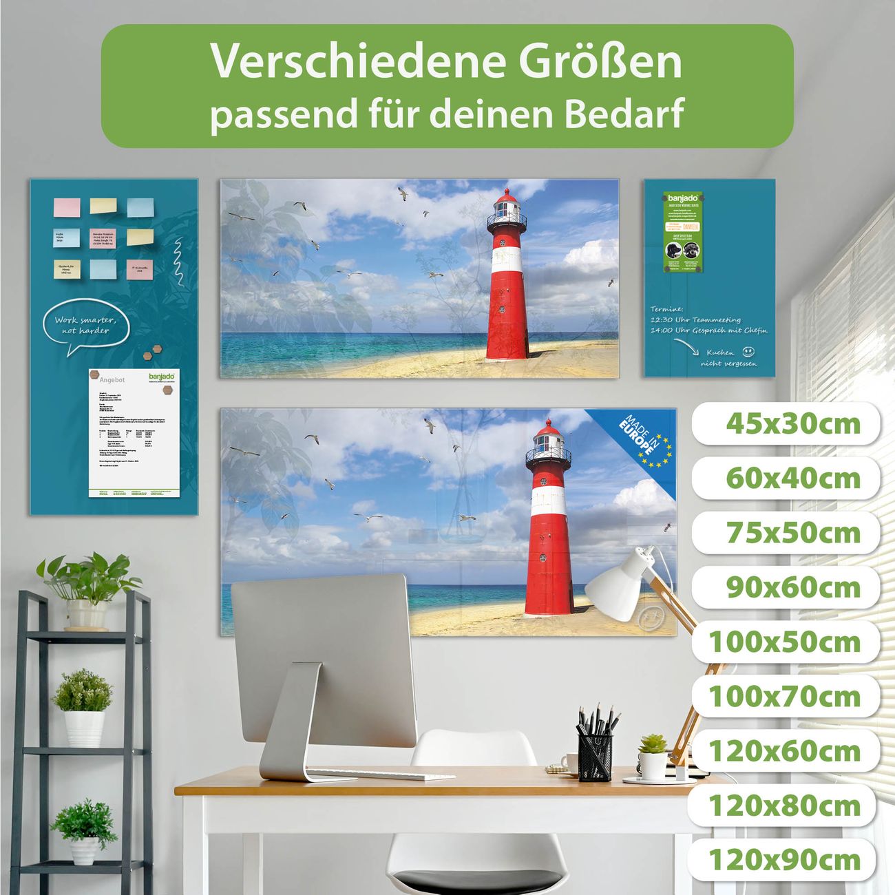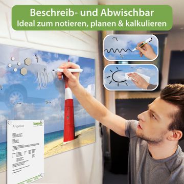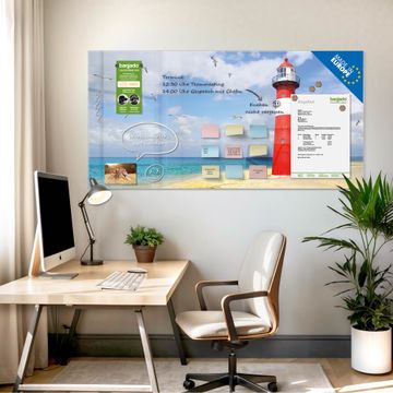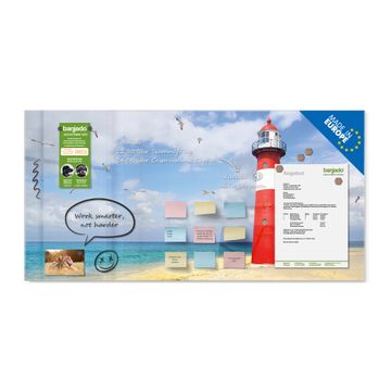 Material: 4mm Sicherheitsglas mit Metallrückwand Eigenschaften: beschreibbar, magnetisch, kratzfest Maße: 100x50x0,6cm, 7,50kg schwer Motiv Nummer 11244 Leuchtturm Westkapelle Zubehör: inklusive 4 Neodym-Magnete