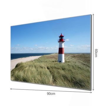 Material: 4mm Sicherheitsglas mit Metallrückwand Eigenschaften: beschreibbar, magnetisch, kratzfest Maße: 90x60x0,6cm, 8,10kg schwer Motiv Nummer 10082 Leuchtturm Zubehör: inklusive 4 Neodym-Magnete