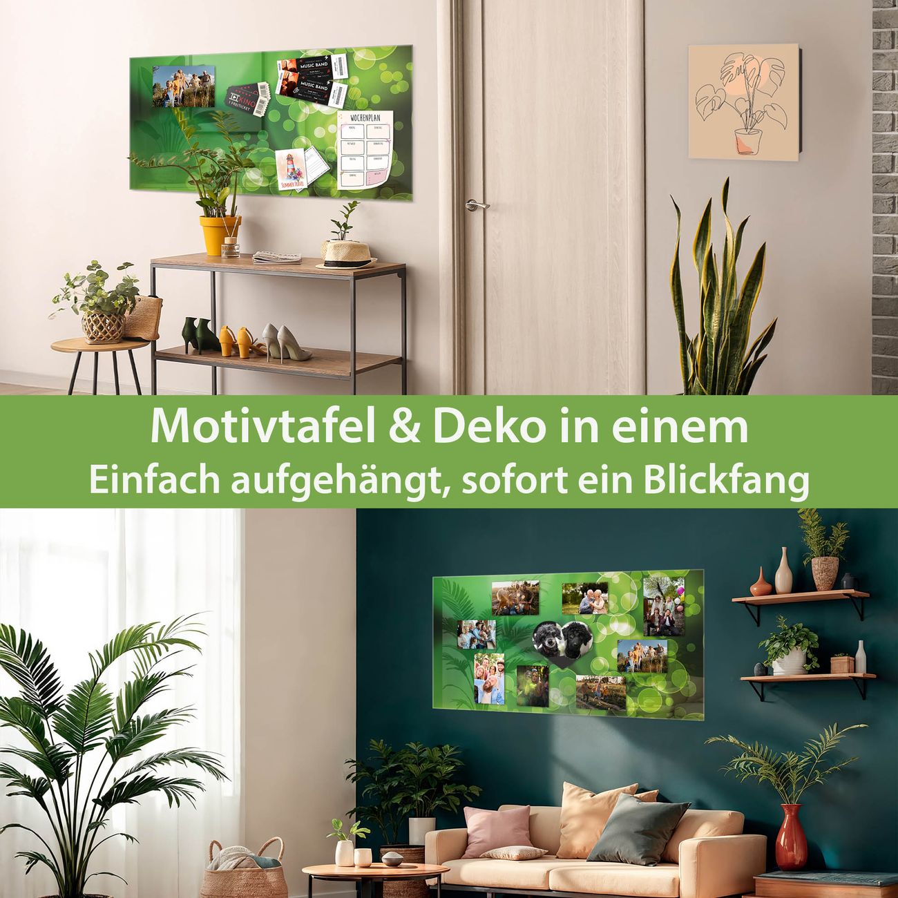 Die banjado Glas Magnettafel mit dem Motiv Motiv Lichtspiel verbindet Funktionalität mit Stil. Sie ersetzt das Zettelchaos durch klare Strukturen und bringt dabei eine warme, natürliche Atmosphäre in Ihr Zuhause. Ob im Büro, in der Küche oder im Eingangsbereich - dieses Design-Board zieht Blicke an und sorgt für Ordnung mit Charakter.