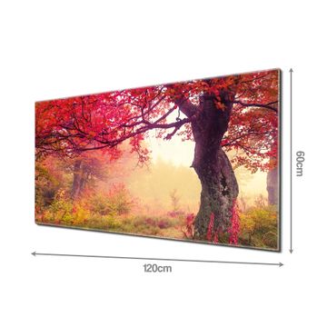 Material: 4mm Sicherheitsglas mit Metallrückwand Eigenschaften: beschreibbar, magnetisch, kratzfest Maße: 120x60x0,6cm, 10,80kg schwer Motiv Nummer 11177 Lichtung Im Herbst Zubehör: inklusive 4 Neodym-Magnete