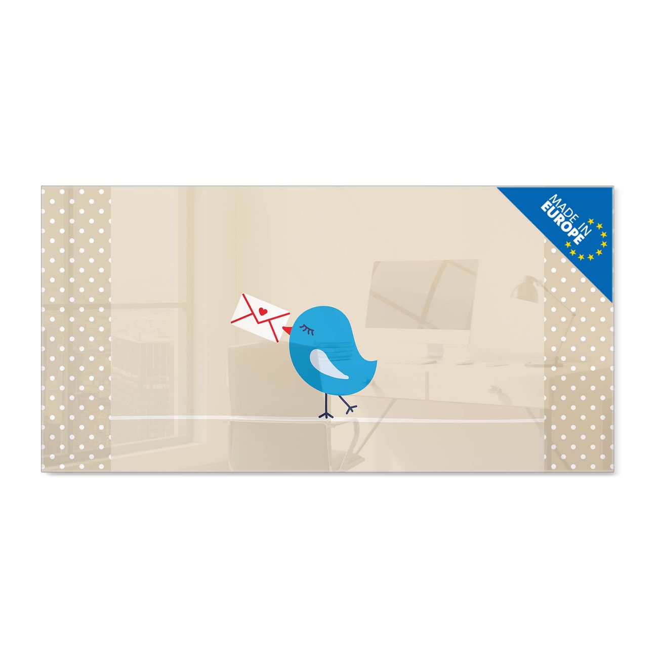 Material: 4mm Sicherheitsglas mit Metallrückwand Eigenschaften: beschreibbar, magnetisch, kratzfest Maße: 100x50x0,6cm, 7,50kg schwer Motiv Nummer 10345 Liebesbrief Zubehör: inklusive 4 Neodym-Magnete