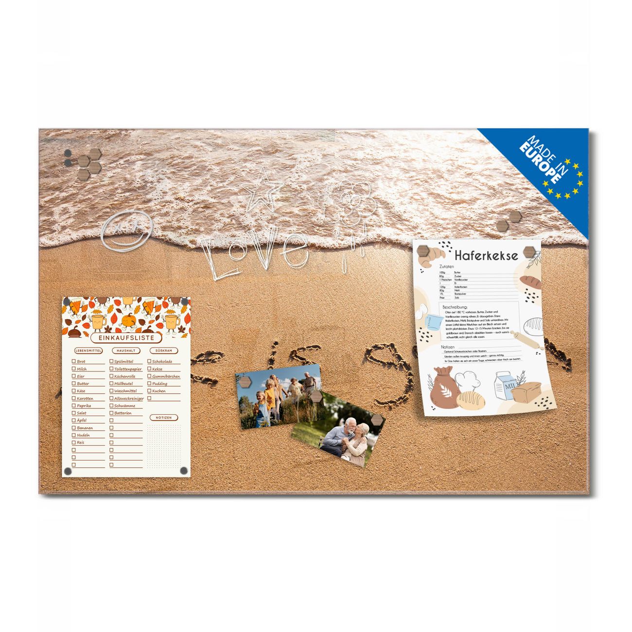 Material: 4mm Sicherheitsglas mit Metallrückwand Eigenschaften: beschreibbar, magnetisch, kratzfest Maße: 60x40x0,6cm, 3,6kg schwer Motiv Nummer 11140 Life Is Good Zubehör: inklusive 4 Neodym-Magnete