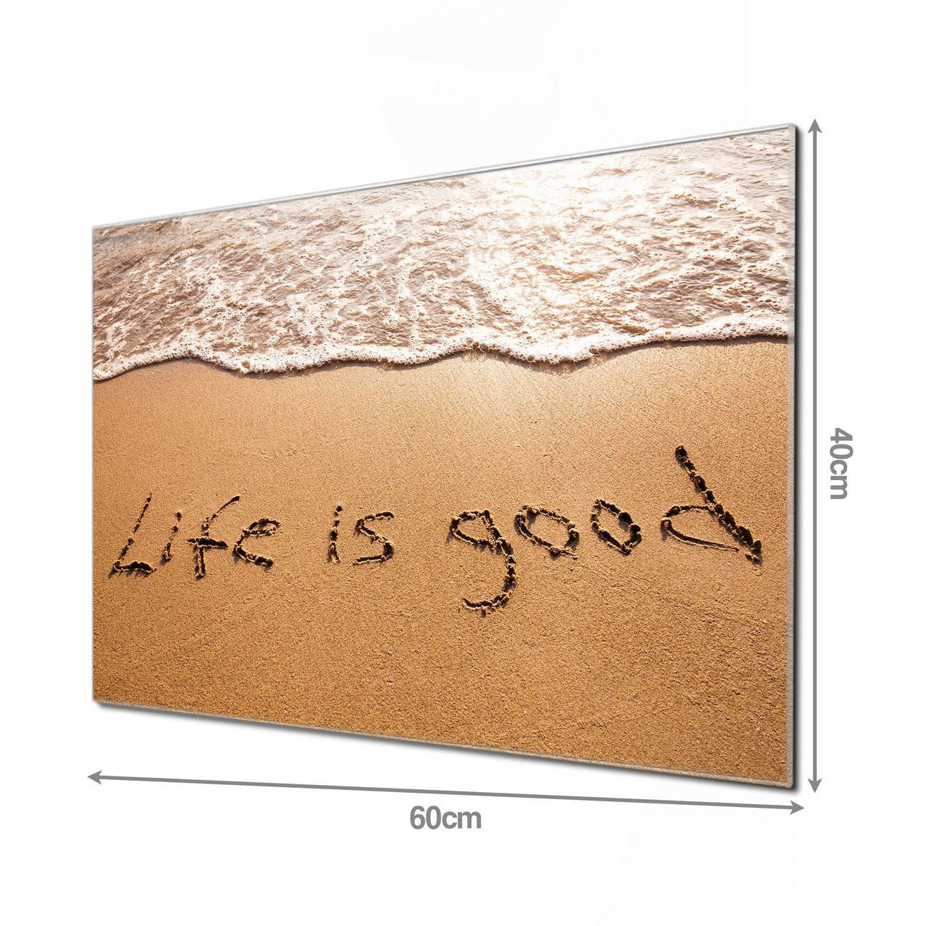 Material  4mm Sicherheitsglas mit Metallrückwand Eigenschaften  beschreibbar, magnetisch, kratzfest Maße  60x40x0,6cm, 3,6kg schwer Motiv  Nummer 11140 Life Is Good Zubehör  inklusive 4 Neodym-Magnete