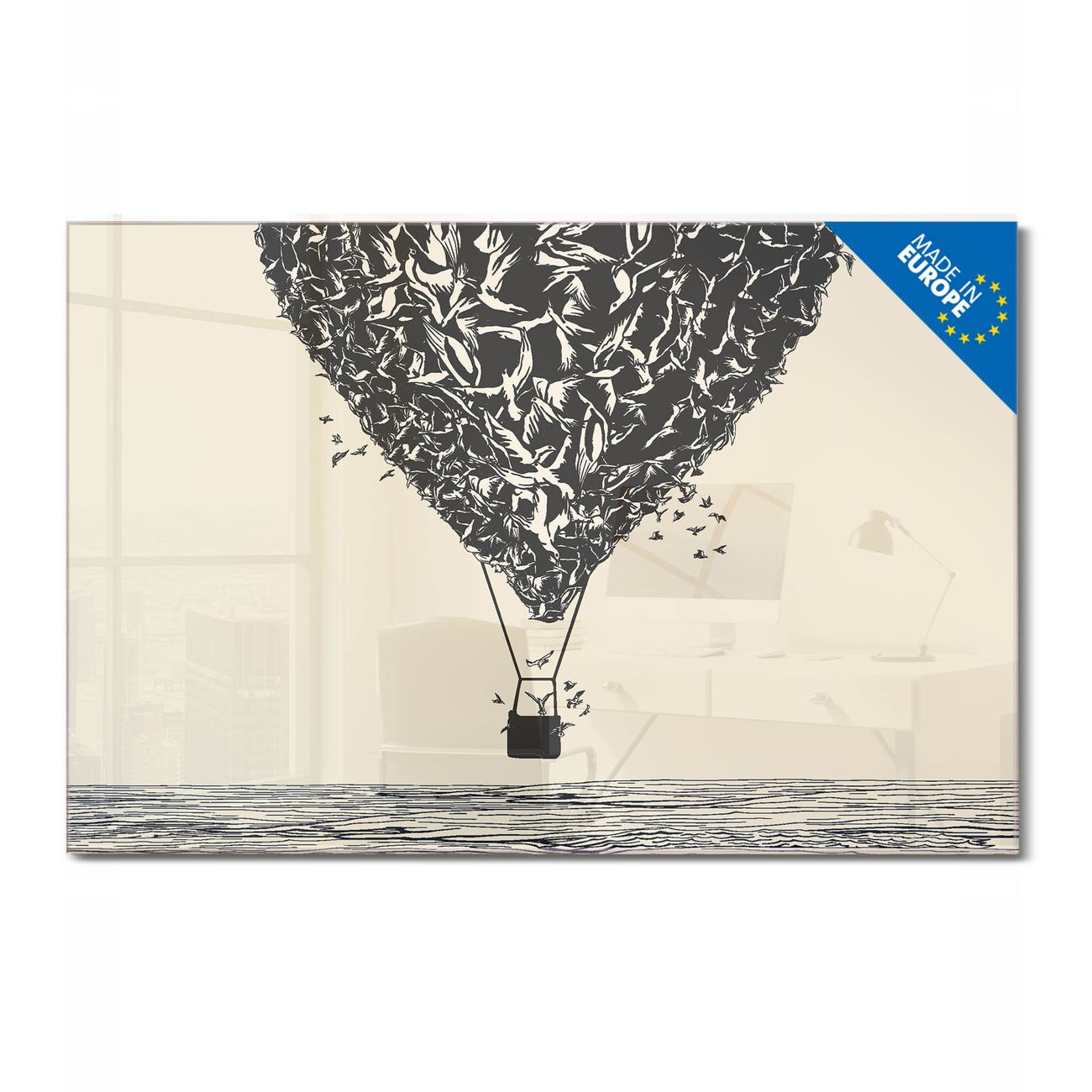 Material: 4mm Sicherheitsglas mit Metallrückwand Eigenschaften: beschreibbar, magnetisch, kratzfest Maße: 120x80x0,6cm, 14,40kg schwer Motiv Nummer 12001 Lift Zubehör: inklusive 4 Neodym-Magnete