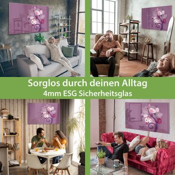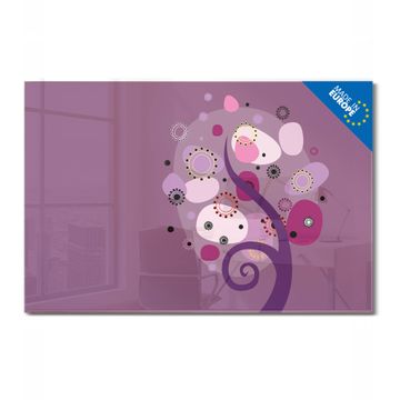Material: 4mm Sicherheitsglas mit Metallrückwand Eigenschaften: beschreibbar, magnetisch, kratzfest Maße: 120x80x0,6cm, 14,40kg schwer Motiv Nummer 10722 Lila Baum Zubehör: inklusive 4 Neodym-Magnete