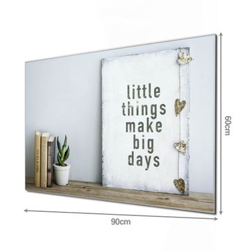 Material  4mm Sicherheitsglas mit Metallrückwand Eigenschaften  beschreibbar, magnetisch, kratzfest Maße  90x60x0,6cm, 8,10kg schwer Motiv  Nummer 12708 Little Things Zubehör  inklusive 4 Neodym-Magnete