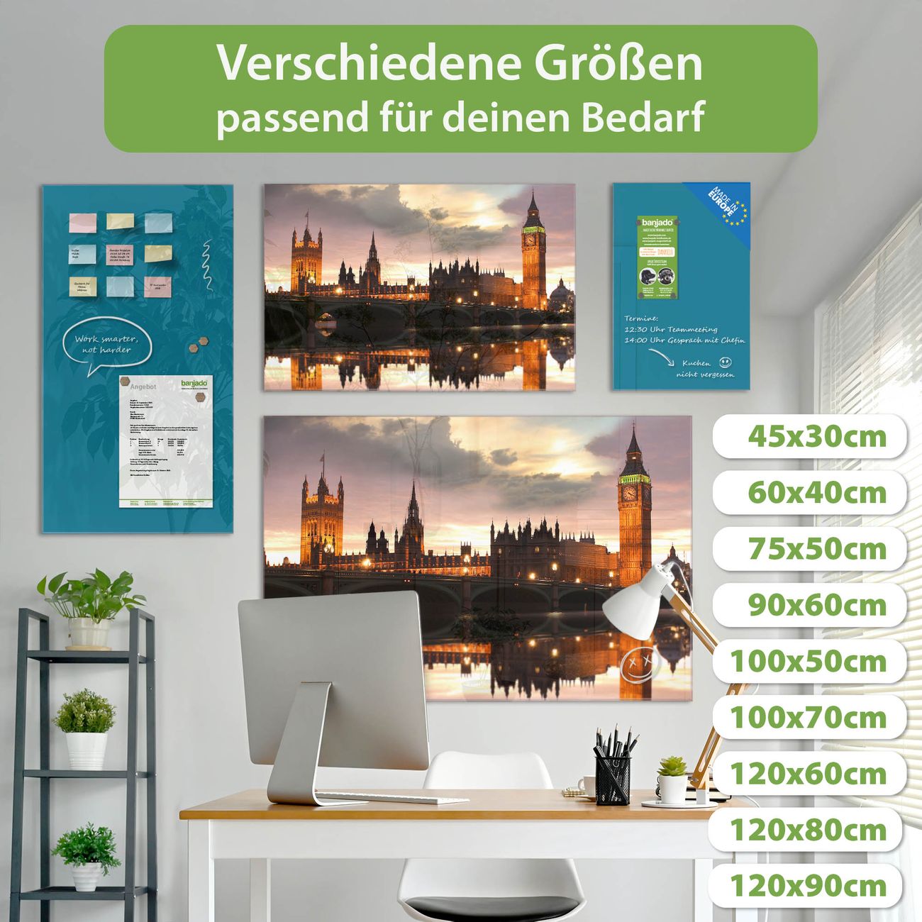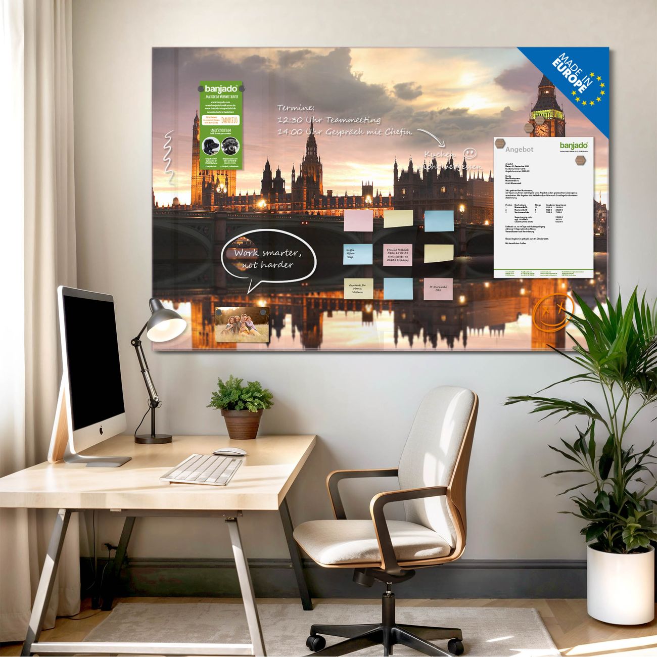 Die banjado Glas Magnettafel mit dem Motiv Motiv Palace of Westminster verbindet Funktionalität mit Stil. Sie ersetzt das Zettelchaos durch klare Strukturen und bringt dabei eine warme, natürliche Atmosphäre in Ihr Zuhause. Ob im Büro, in der Küche oder im Eingangsbereich - dieses Design-Board zieht Blicke an und sorgt für Ordnung mit Charakter.