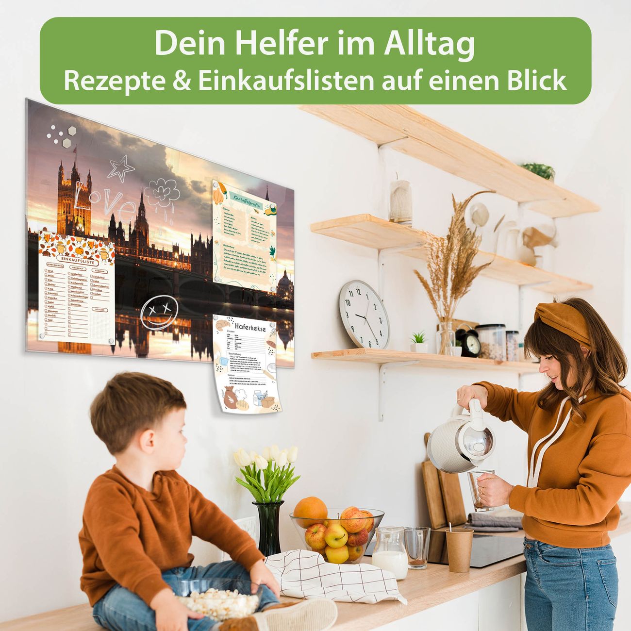Ein Stück Design, das Ihren Alltag organisiert. Schreiben, heften, inspirieren - alles an einem Ort. Qualität, die man spürt. Montage leicht gemacht. Handwerk mit Herz - veredelt in Sachsen. Einzigartiges Design mit Motiv Motiv Palace of Westminster Beschreibbare Glasoberfläche, leicht zu reinigen Starke Magnetkraft durch Stahlrückwand Inklusive 4 Neodym-Magneten Flexible Montageoptionen Handveredelt in Sachsen - Qualität, die bleibt