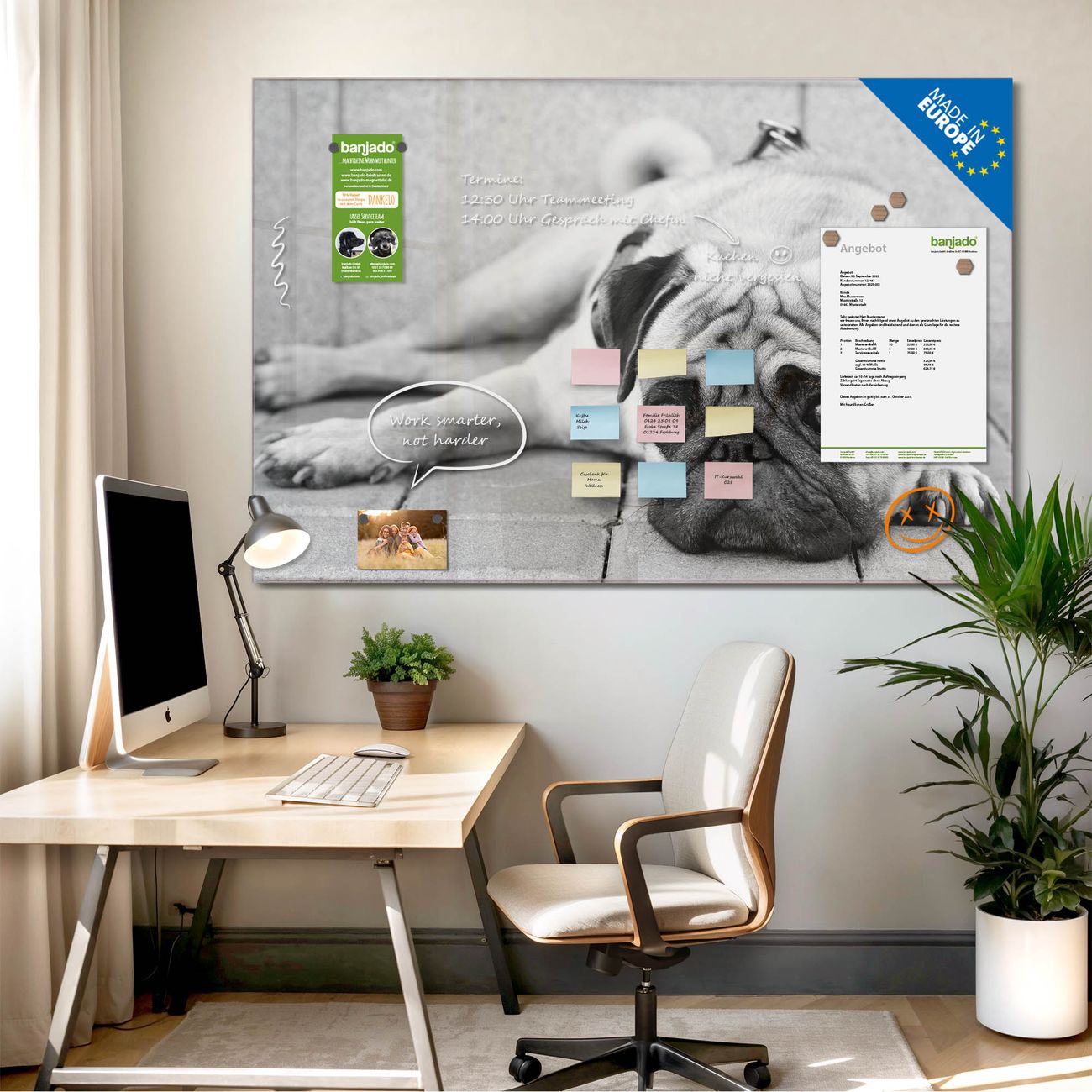 Jede Glas Magnettafel wird in unserer Werkstatt von Hand gefertigt und sorgfältig geprüft. So erhalten Sie ein echtes Qualitätsprodukt, das Funktion und Ästhetik perfekt vereint.?? Warum banjado?