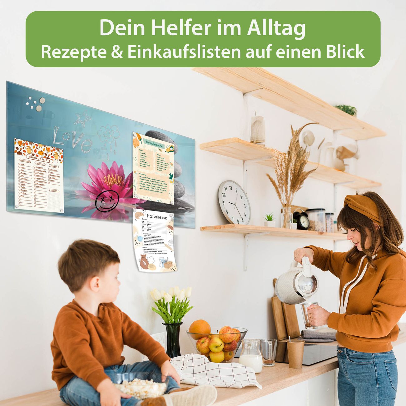 Ein Stück Design, das Ihren Alltag organisiert. Schreiben, heften, inspirieren - alles an einem Ort. Qualität, die man spürt. Montage leicht gemacht. Handwerk mit Herz - veredelt in Sachsen. Einzigartiges Design mit Motiv Motiv Lotus Und Steine Beschreibbare Glasoberfläche, leicht zu reinigen Starke Magnetkraft durch Stahlrückwand Inklusive 4 Neodym-Magneten Flexible Montageoptionen Handveredelt in Sachsen - Qualität, die bleibt