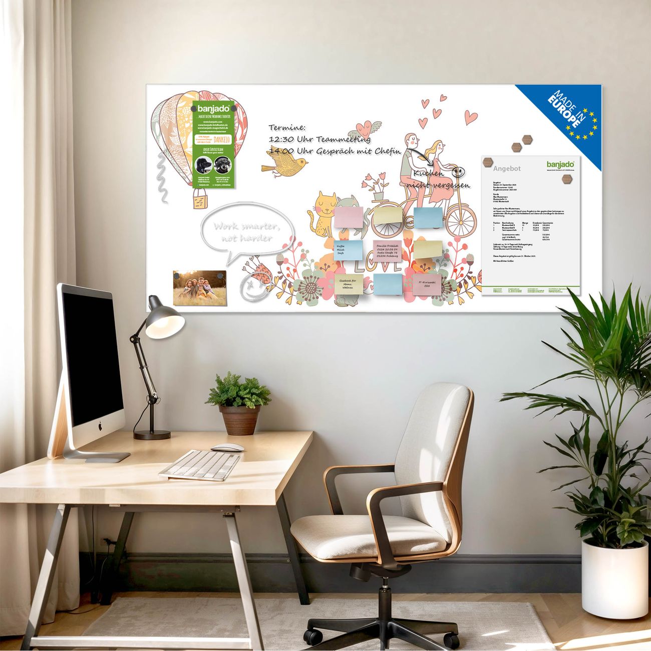 Die banjado Glas Magnettafel mit dem Motiv Motiv Love verbindet Funktionalität mit Stil. Sie ersetzt das Zettelchaos durch klare Strukturen und bringt dabei eine warme, natürliche Atmosphäre in Ihr Zuhause. Ob im Büro, in der Küche oder im Eingangsbereich - dieses Design-Board zieht Blicke an und sorgt für Ordnung mit Charakter.
