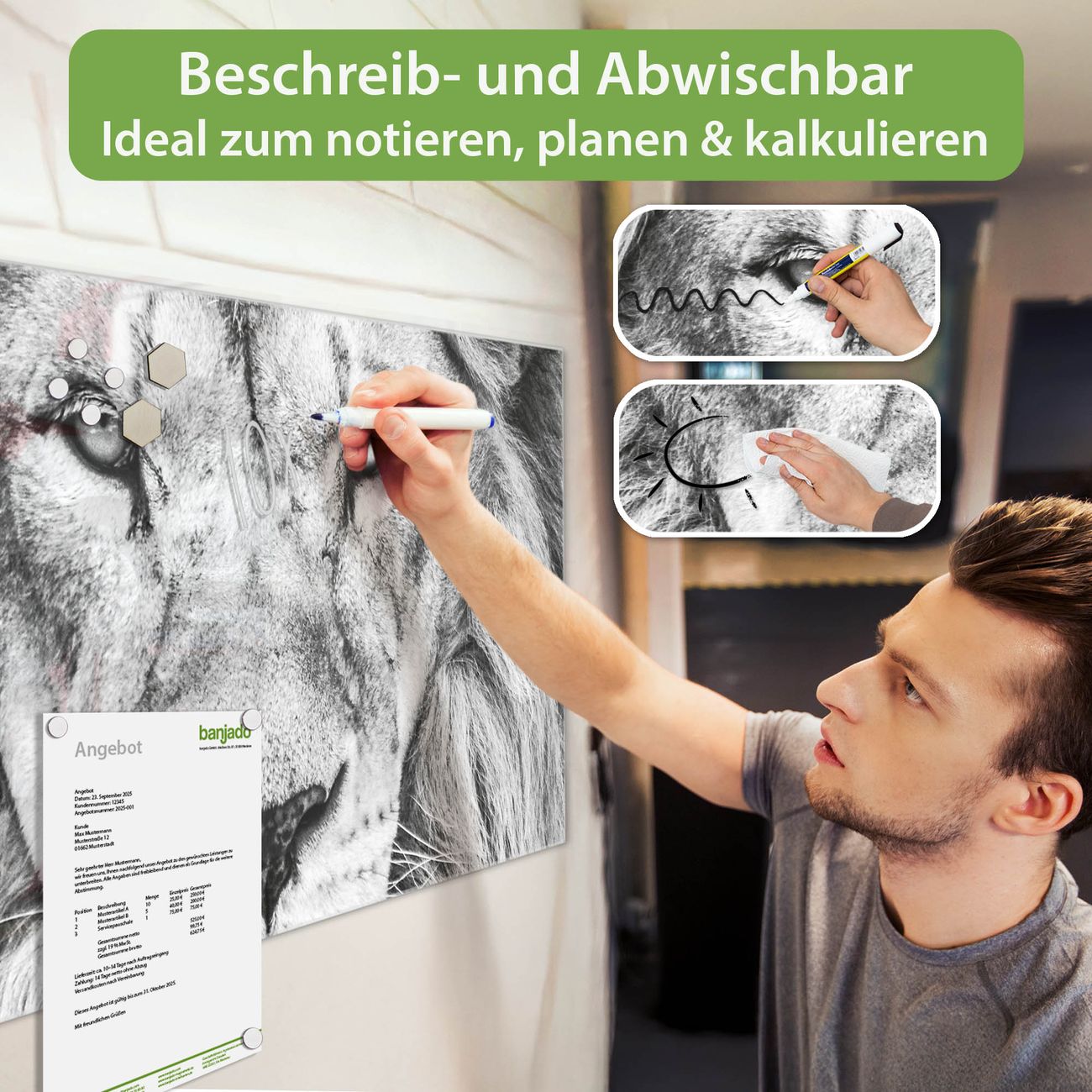Die banjado Glas Magnettafel mit dem Motiv Motiv Ludwig verbindet Funktionalität mit Stil. Sie ersetzt das Zettelchaos durch klare Strukturen und bringt dabei eine warme, natürliche Atmosphäre in Ihr Zuhause. Ob im Büro, in der Küche oder im Eingangsbereich - dieses Design-Board zieht Blicke an und sorgt für Ordnung mit Charakter.