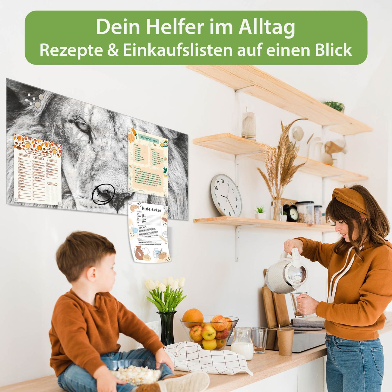 Auf der glatten Glasoberfläche lassen sich Termine, Rezepte oder Notizen ganz einfach mit Kreidestiften festhalten und rückstandslos entfernen. Starke Neodym-Magnete halten Ihre wichtigsten Erinnerungen sicher an Ort und Stelle. So entsteht Ihre ganz persönliche Ideenwand - jeden Tag neu.