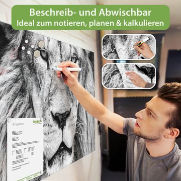 Gefertigt aus gehärtetem Sicherheitsglas mit einer magnetischen Rückwand aus Stahl überzeugt diese Magnettafel durch Stabilität und Langlebigkeit. Die Oberfläche bleibt dauerhaft brillant und pflegeleicht, selbst bei täglicher Nutzung.