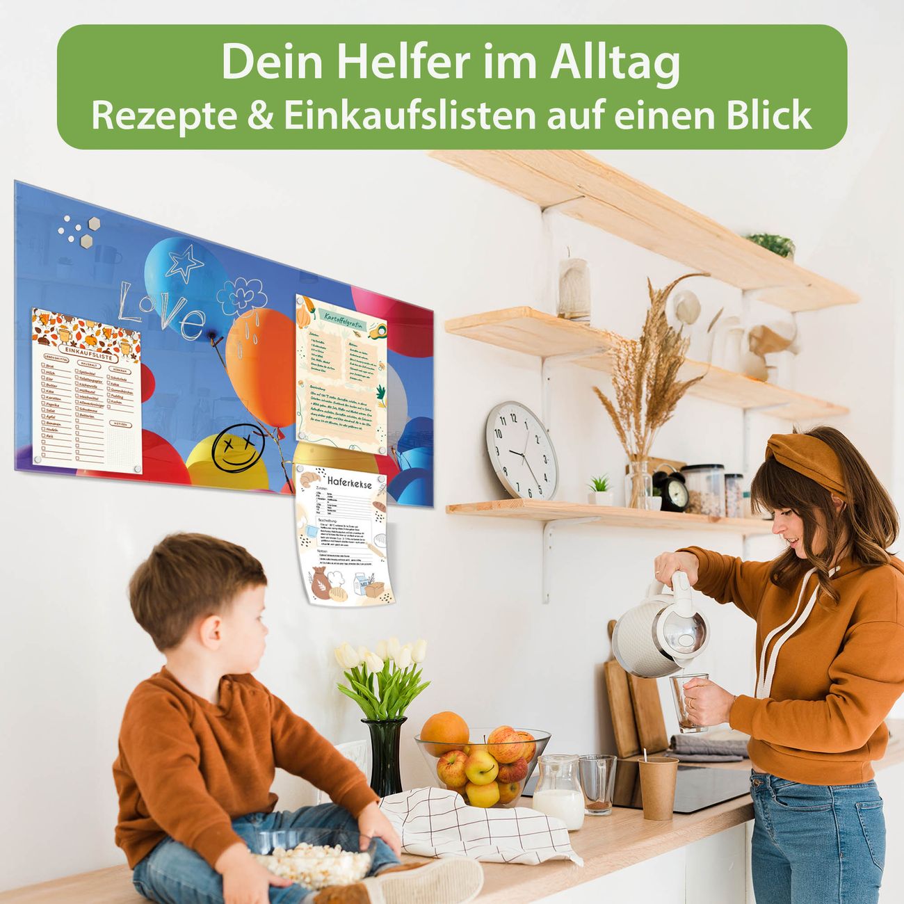 Ein Stück Design, das Ihren Alltag organisiert. Schreiben, heften, inspirieren - alles an einem Ort. Qualität, die man spürt. Montage leicht gemacht. Handwerk mit Herz - veredelt in Sachsen. Einzigartiges Design mit Motiv Motiv Luftballons Beschreibbare Glasoberfläche, leicht zu reinigen Starke Magnetkraft durch Stahlrückwand Inklusive 4 Neodym-Magneten Flexible Montageoptionen Handveredelt in Sachsen - Qualität, die bleibt