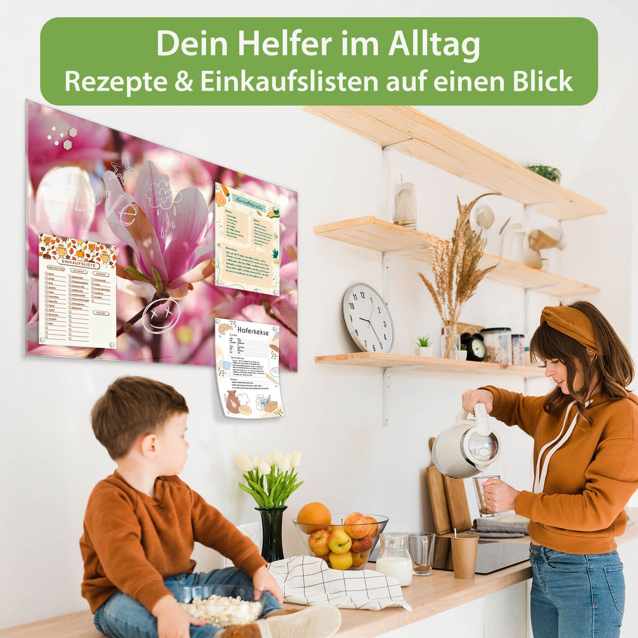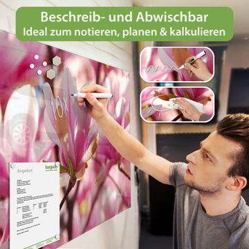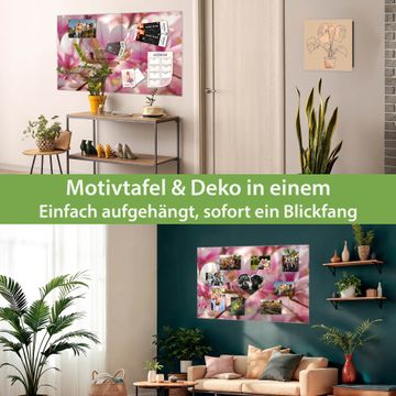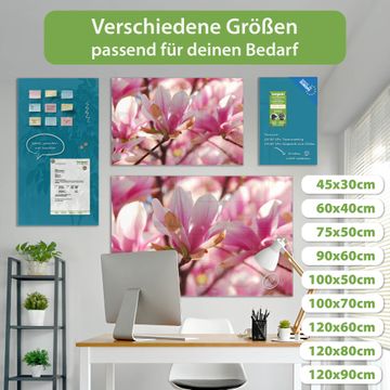 Die banjado Glas Magnettafel mit dem Motiv Motiv Magnolia verbindet Funktionalität mit Stil. Sie ersetzt das Zettelchaos durch klare Strukturen und bringt dabei eine warme, natürliche Atmosphäre in Ihr Zuhause. Ob im Büro, in der Küche oder im Eingangsbereich - dieses Design-Board zieht Blicke an und sorgt für Ordnung mit Charakter.