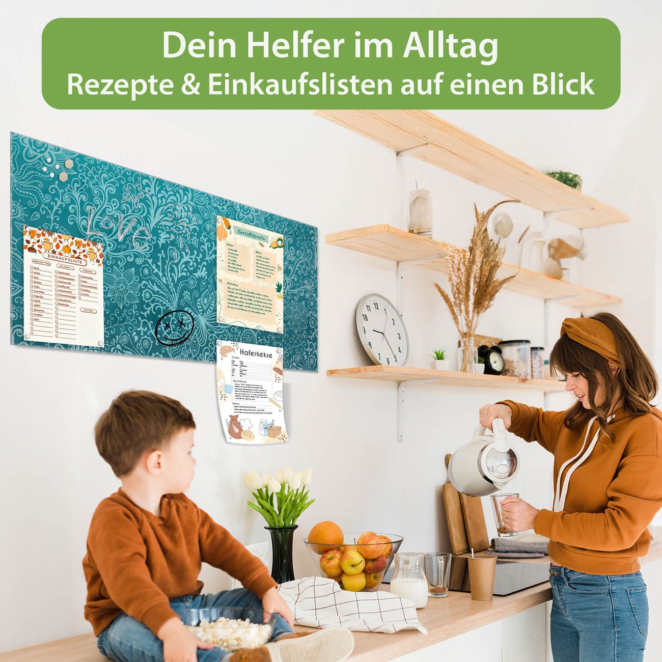 Auf der glatten Glasoberfläche lassen sich Termine, Rezepte oder Notizen ganz einfach mit Kreidestiften festhalten und rückstandslos entfernen. Starke Neodym-Magnete halten Ihre wichtigsten Erinnerungen sicher an Ort und Stelle. So entsteht Ihre ganz persönliche Ideenwand - jeden Tag neu.