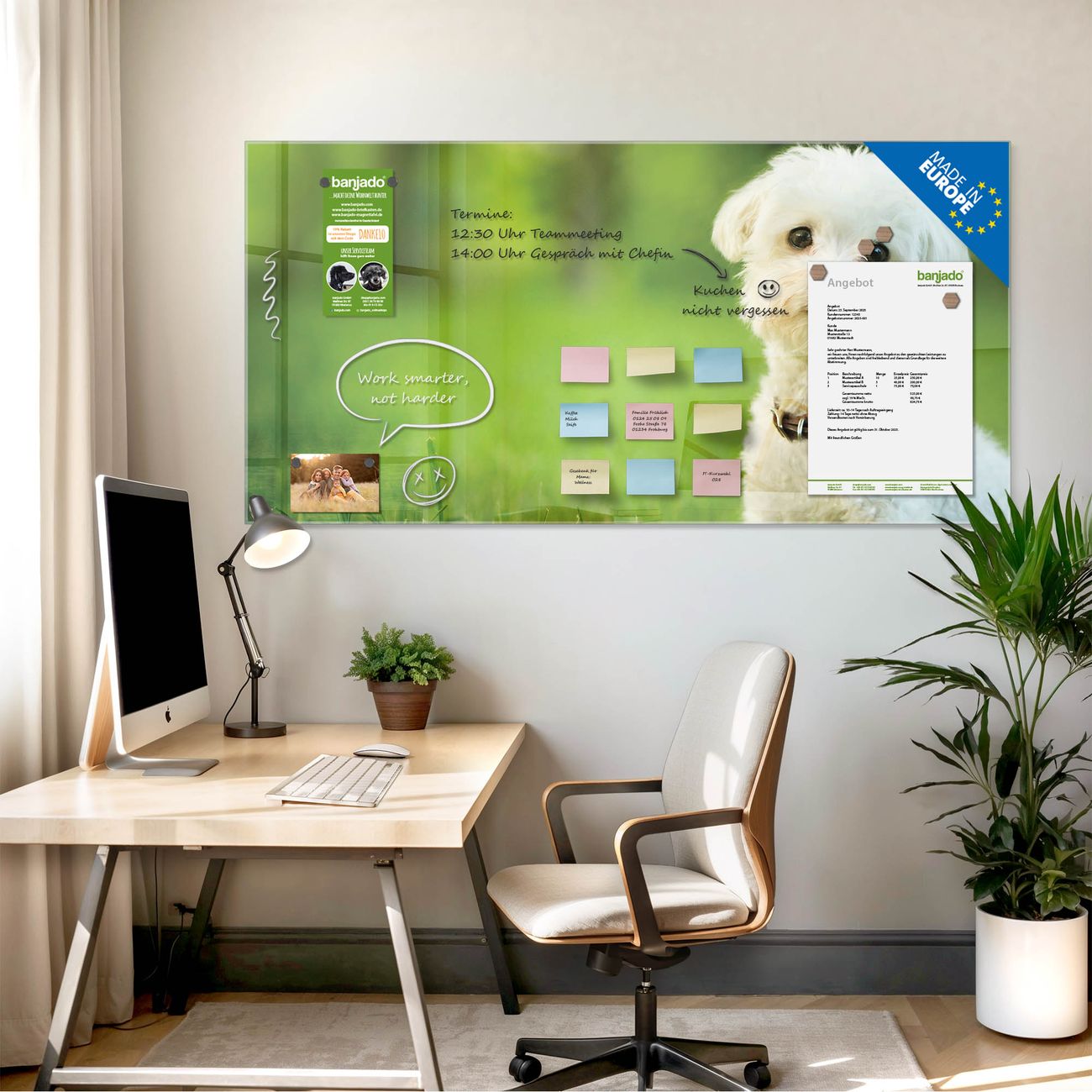 Jede Glas Magnettafel wird in unserer Werkstatt von Hand gefertigt und sorgfältig geprüft. So erhalten Sie ein echtes Qualitätsprodukt, das Funktion und Ästhetik perfekt vereint.?? Warum banjado?