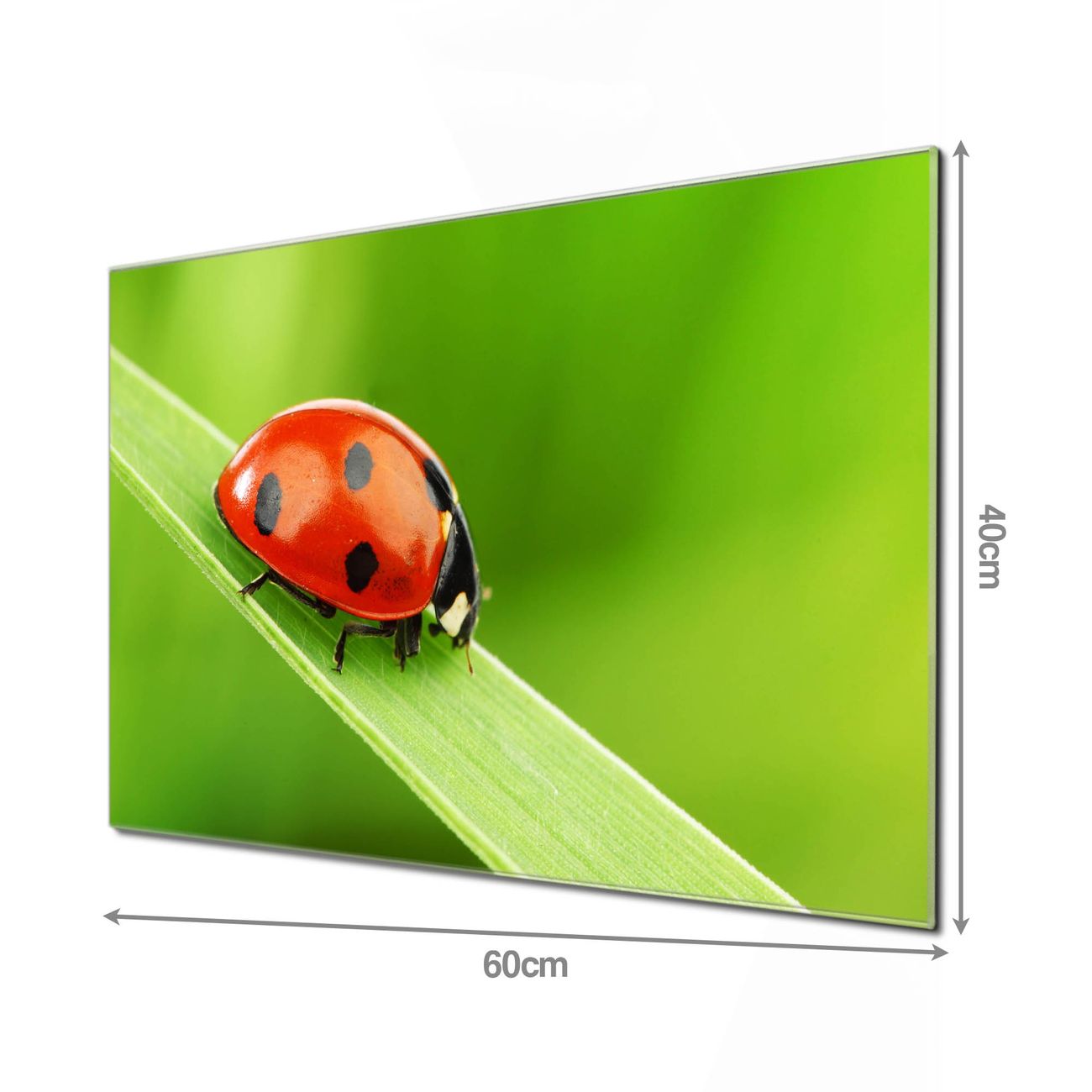 Material  4mm Sicherheitsglas mit Metallrückwand Eigenschaften  beschreibbar, magnetisch, kratzfest Maße  60x40x0,6cm, 3,6kg schwer Motiv  Nummer 10047 Marienkäfer Zubehör  inklusive 4 Neodym-Magnete