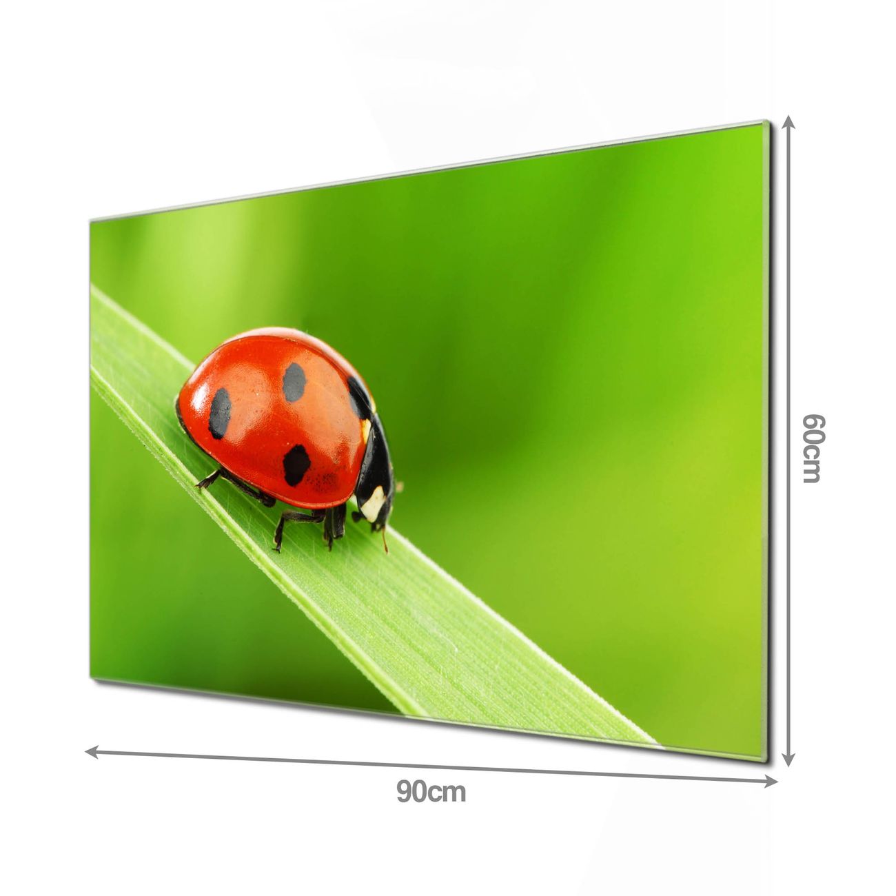 Material  4mm Sicherheitsglas mit Metallrückwand Eigenschaften  beschreibbar, magnetisch, kratzfest Maße  90x60x0,6cm, 8,10kg schwer Motiv  Nummer 10047 Marienkäfer Zubehör  inklusive 4 Neodym-Magnete