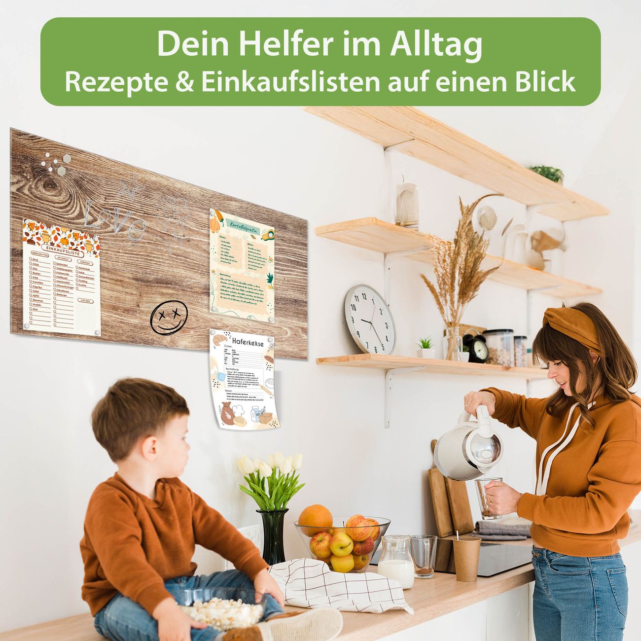 Ein Stück Design, das Ihren Alltag organisiert. Schreiben, heften, inspirieren - alles an einem Ort. Qualität, die man spürt. Montage leicht gemacht. Handwerk mit Herz - veredelt in Sachsen. Einzigartiges Design mit Motiv Motiv Maserung Beschreibbare Glasoberfläche, leicht zu reinigen Starke Magnetkraft durch Stahlrückwand Inklusive 4 Neodym-Magneten Flexible Montageoptionen Handveredelt in Sachsen - Qualität, die bleibt