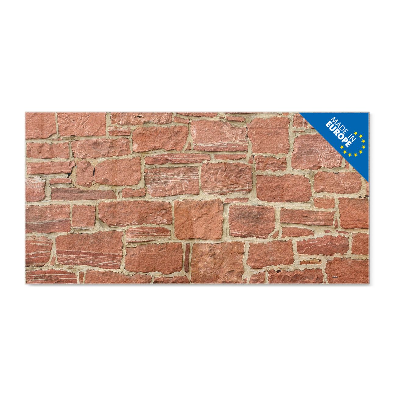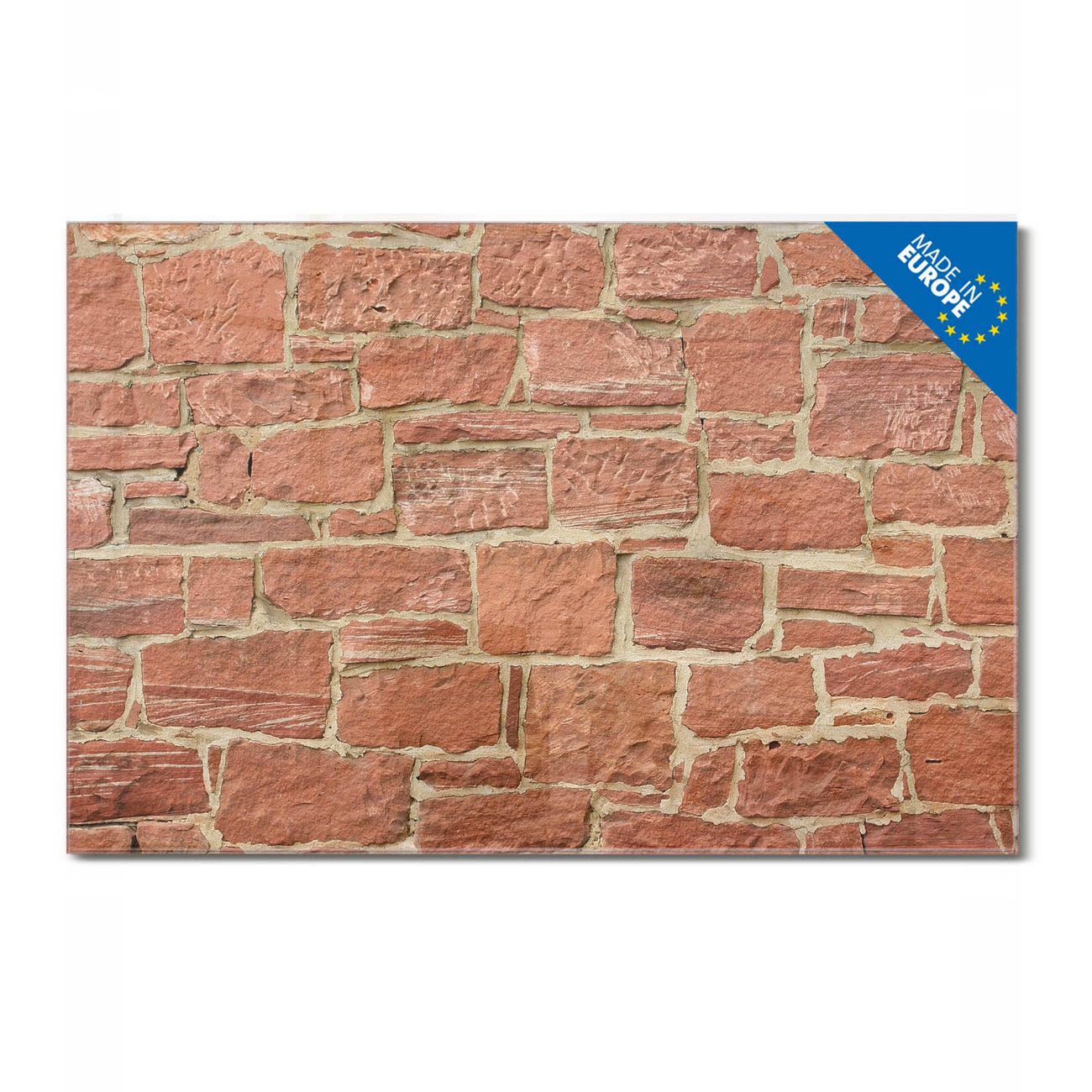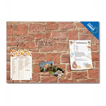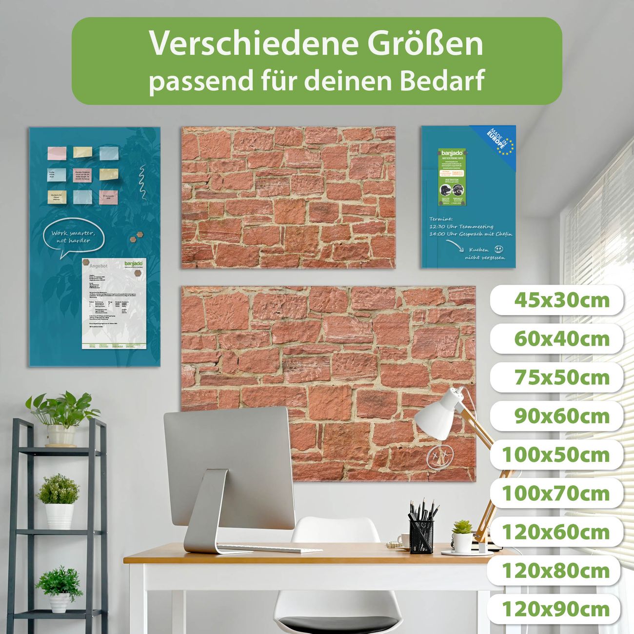 Material: 4mm Sicherheitsglas mit Metallrückwand Eigenschaften: beschreibbar, magnetisch, kratzfest Maße: 120x60x0,6cm, 10,80kg schwer Motiv Nummer 10448 Mauerwerk Zubehör: inklusive 4 Neodym-Magnete