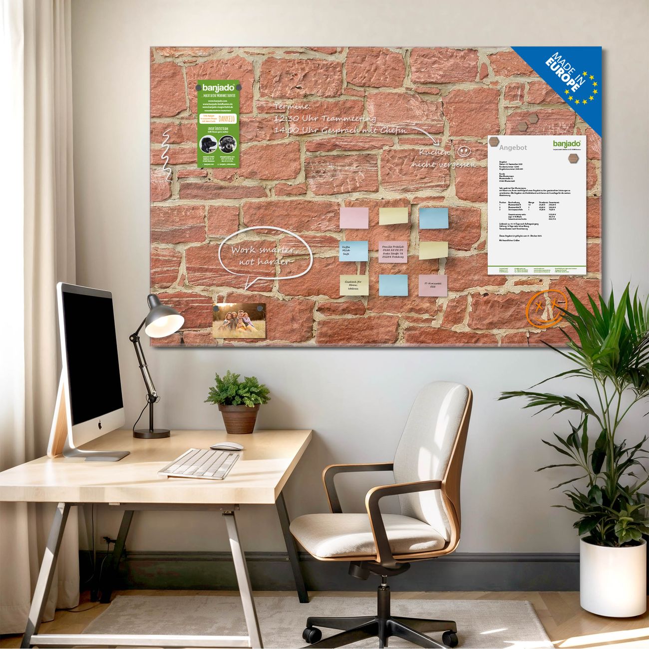 Die banjado Glas Magnettafel mit dem Motiv Motiv Mauerwerk verbindet Funktionalität mit Stil. Sie ersetzt das Zettelchaos durch klare Strukturen und bringt dabei eine warme, natürliche Atmosphäre in Ihr Zuhause. Ob im Büro, in der Küche oder im Eingangsbereich - dieses Design-Board zieht Blicke an und sorgt für Ordnung mit Charakter.