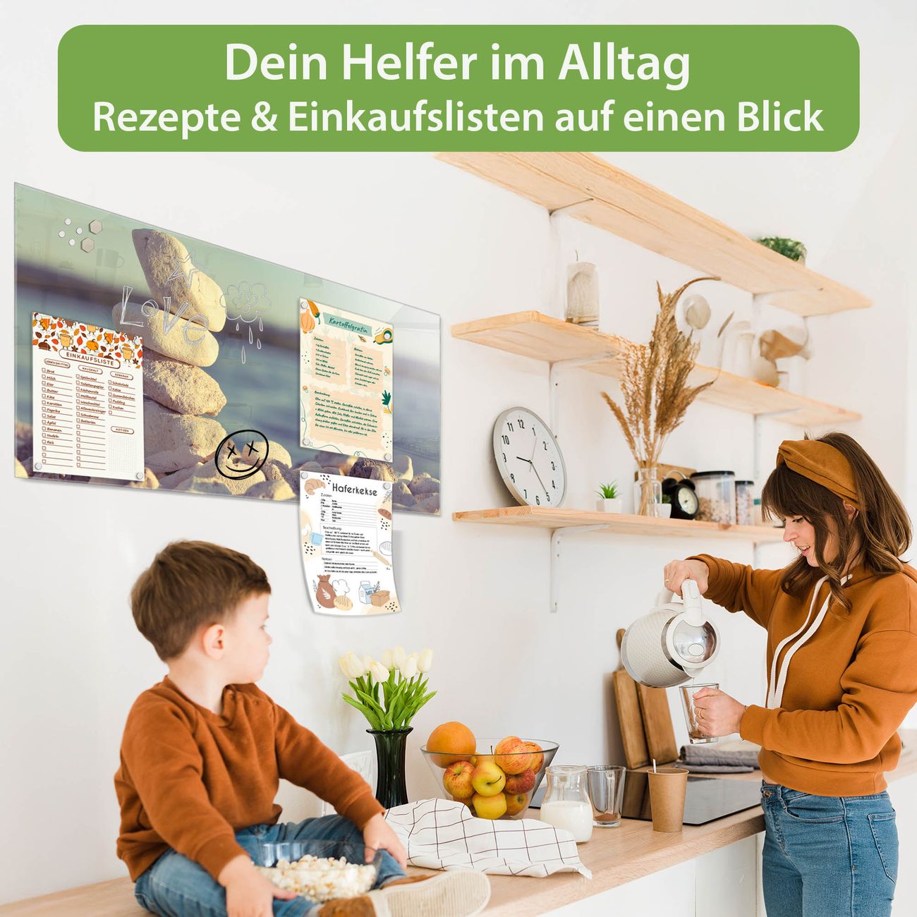 Ein Stück Design, das Ihren Alltag organisiert. Schreiben, heften, inspirieren - alles an einem Ort. Qualität, die man spürt. Montage leicht gemacht. Handwerk mit Herz - veredelt in Sachsen. Einzigartiges Design mit Motiv Motiv Leichte Steine Beschreibbare Glasoberfläche, leicht zu reinigen Starke Magnetkraft durch Stahlrückwand Inklusive 4 Neodym-Magneten Flexible Montageoptionen Handveredelt in Sachsen - Qualität, die bleibt