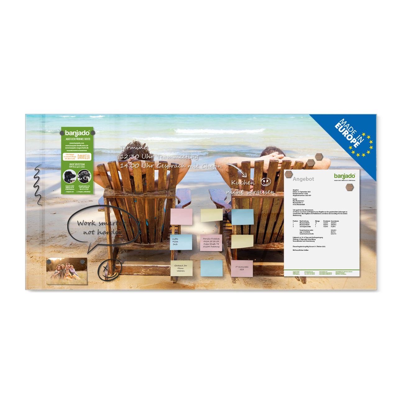 Bitte beachten Sie, dass ausschliessliche spezielle Magnete an der Glastafel haften. Wir empfehlen banjado Neodym Magnete, diese sind durch uns auf Wirksamkeit geprüft.