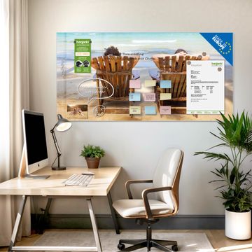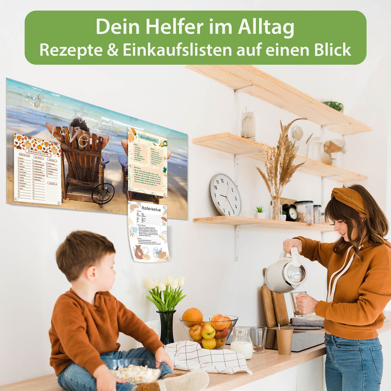Auf der glatten Glasoberfläche lassen sich Termine, Rezepte oder Notizen ganz einfach mit Kreidestiften festhalten und rückstandslos entfernen. Starke Neodym-Magnete halten Ihre wichtigsten Erinnerungen sicher an Ort und Stelle. So entsteht Ihre ganz persönliche Ideenwand - jeden Tag neu.
