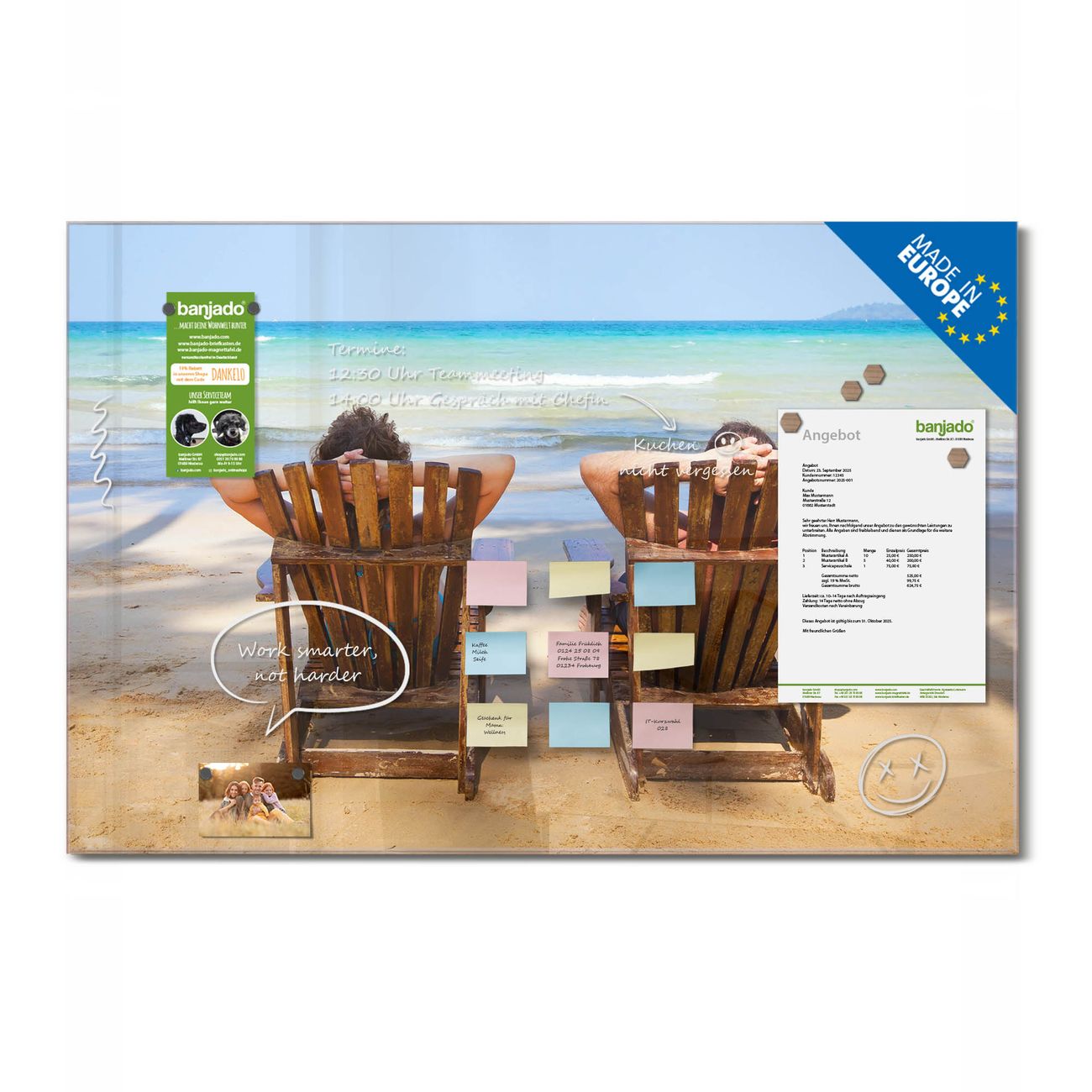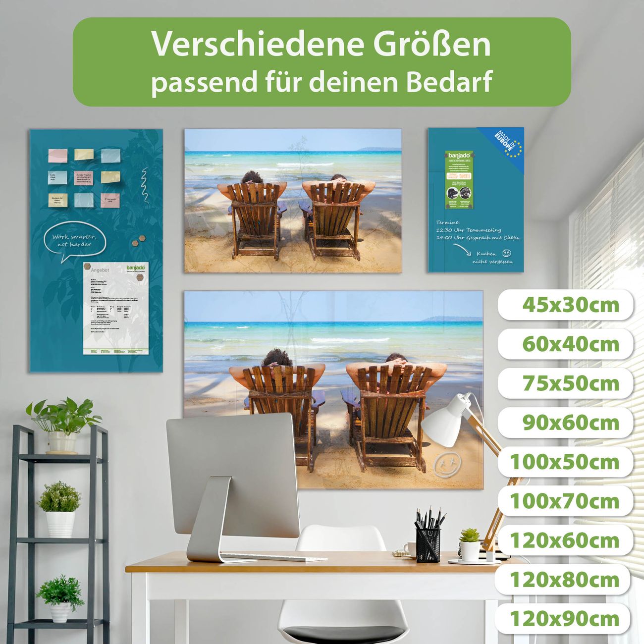 Material: 4mm Sicherheitsglas mit Metallrückwand Eigenschaften: beschreibbar, magnetisch, kratzfest Maße: 90x60x0,6cm, 8,10kg schwer Motiv Nummer 12129 Robinson Und Freitag Zubehör: inklusive 4 Neodym-Magnete