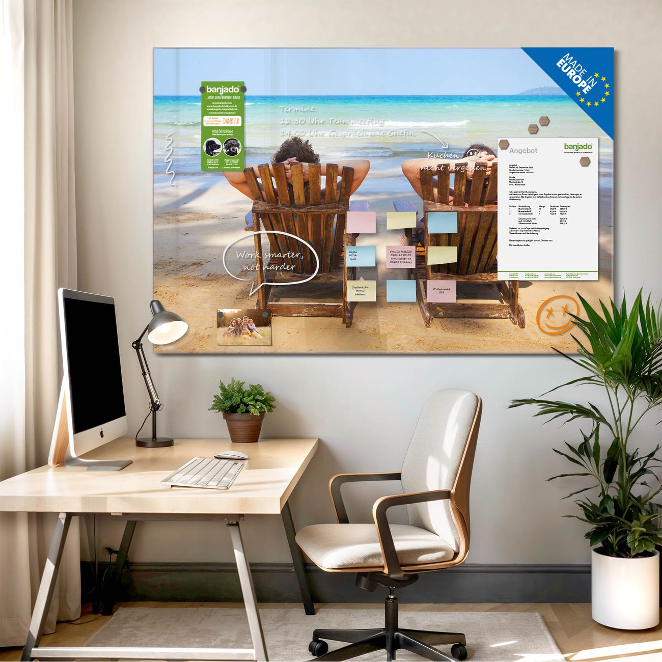 Jede Glas Magnettafel wird in unserer Werkstatt von Hand gefertigt und sorgfältig geprüft. So erhalten Sie ein echtes Qualitätsprodukt, das Funktion und Ästhetik perfekt vereint.?? Warum banjado?