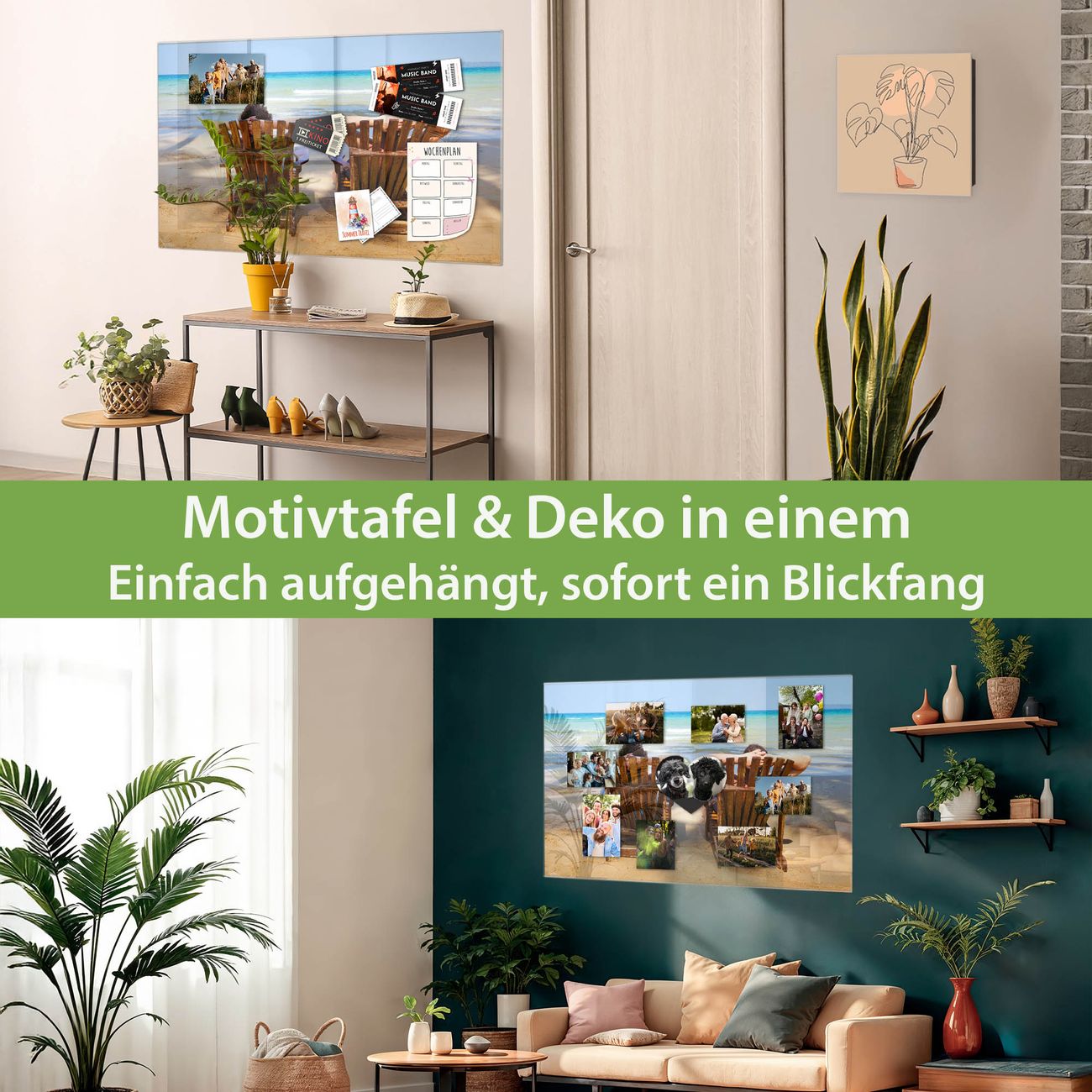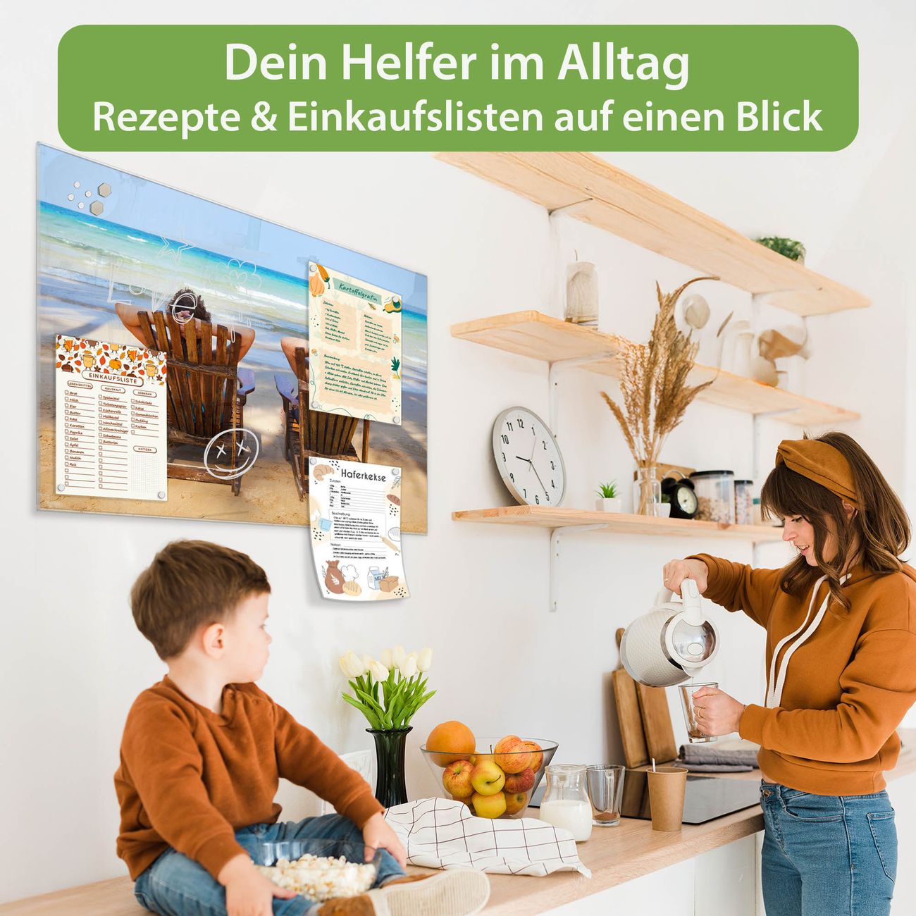 Auf der glatten Glasoberfläche lassen sich Termine, Rezepte oder Notizen ganz einfach mit Kreidestiften festhalten und rückstandslos entfernen. Starke Neodym-Magnete halten Ihre wichtigsten Erinnerungen sicher an Ort und Stelle. So entsteht Ihre ganz persönliche Ideenwand - jeden Tag neu.