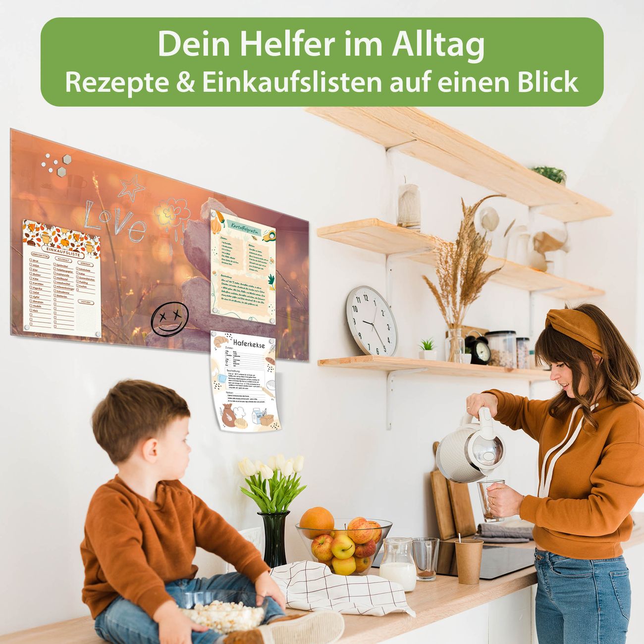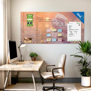 Auf der glatten Glasoberfläche lassen sich Termine, Rezepte oder Notizen ganz einfach mit Kreidestiften festhalten und rückstandslos entfernen. Starke Neodym-Magnete halten Ihre wichtigsten Erinnerungen sicher an Ort und Stelle. So entsteht Ihre ganz persönliche Ideenwand - jeden Tag neu.