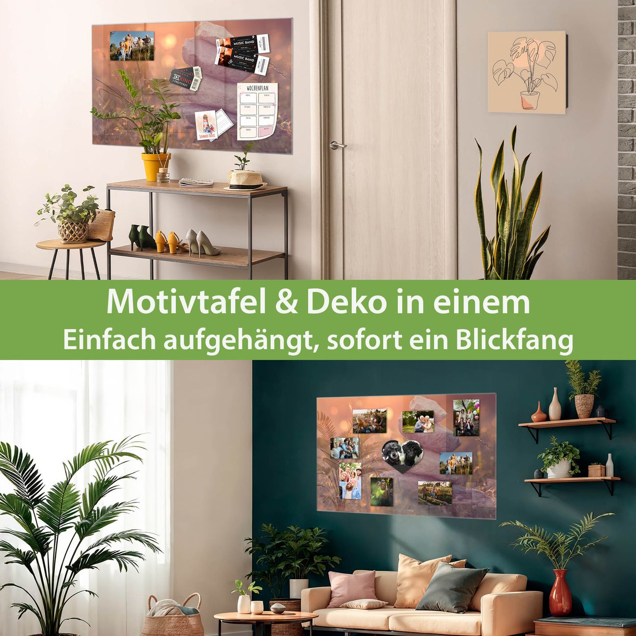 Die banjado Glas Magnettafel mit dem Motiv Motiv Mein Ort verbindet Funktionalität mit Stil. Sie ersetzt das Zettelchaos durch klare Strukturen und bringt dabei eine warme, natürliche Atmosphäre in Ihr Zuhause. Ob im Büro, in der Küche oder im Eingangsbereich - dieses Design-Board zieht Blicke an und sorgt für Ordnung mit Charakter.