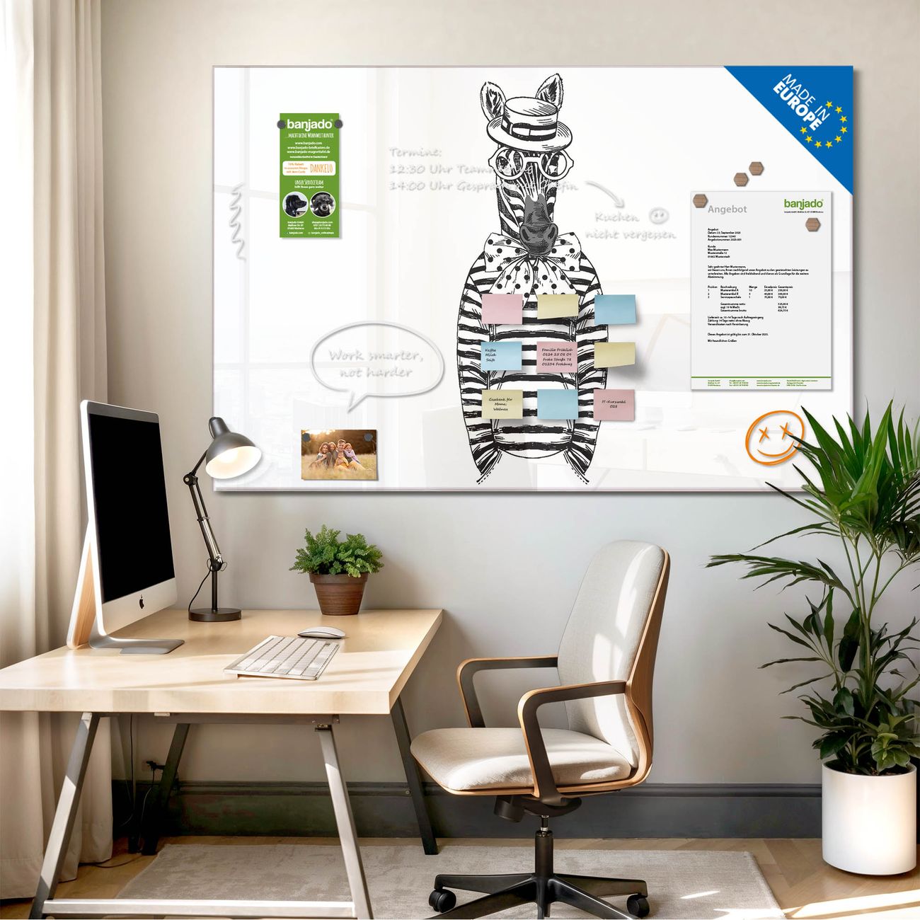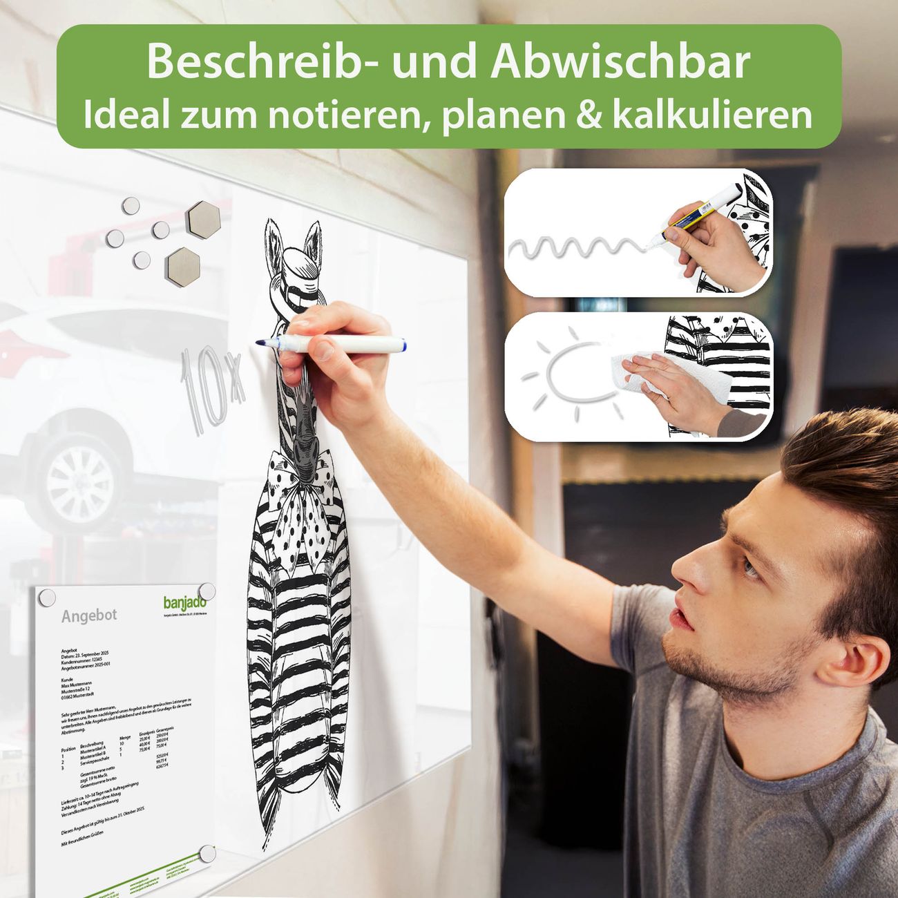 Bitte beachten Sie, dass ausschliessliche spezielle Magnete an der Glastafel haften. Wir empfehlen banjado Neodym Magnete, diese sind durch uns auf Wirksamkeit geprüft.