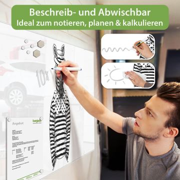 Gefertigt aus gehärtetem Sicherheitsglas mit einer magnetischen Rückwand aus Stahl überzeugt diese Magnettafel durch Stabilität und Langlebigkeit. Die Oberfläche bleibt dauerhaft brillant und pflegeleicht, selbst bei täglicher Nutzung.