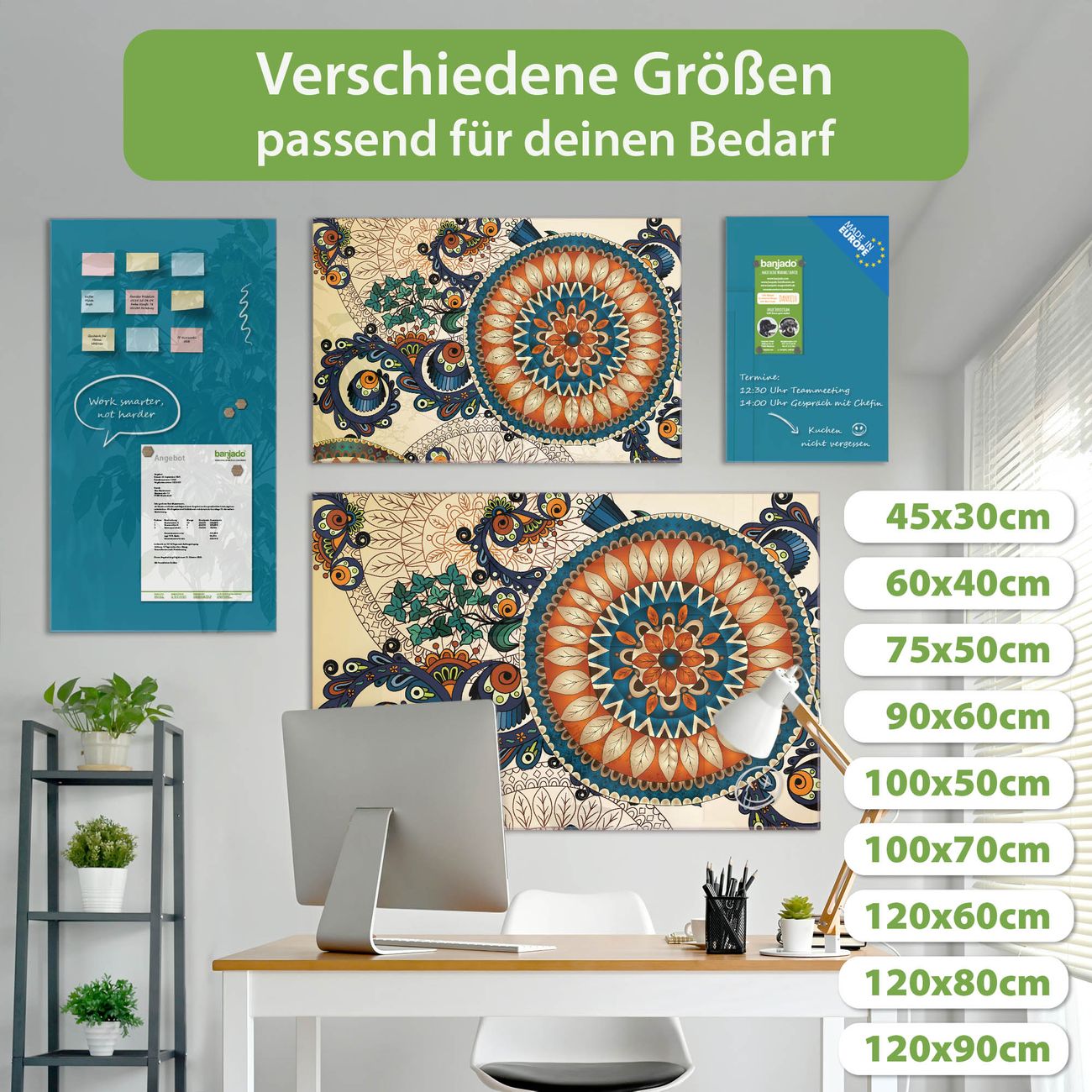 Jede Glas Magnettafel wird in unserer Werkstatt von Hand gefertigt und sorgfältig geprüft. So erhalten Sie ein echtes Qualitätsprodukt, das Funktion und Ästhetik perfekt vereint.?? Warum banjado?
