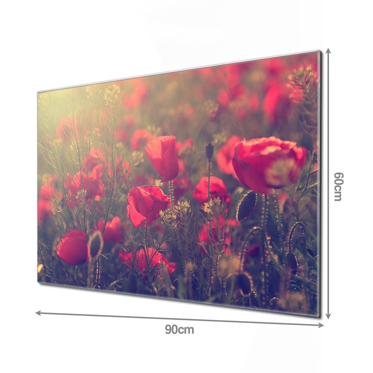 Material: 4mm Sicherheitsglas mit Metallrückwand Eigenschaften: beschreibbar, magnetisch, kratzfest Maße: 90x60x0,6cm, 8,10kg schwer Motiv Nummer 11632 Mohn Zubehör: inklusive 4 Neodym-Magnete